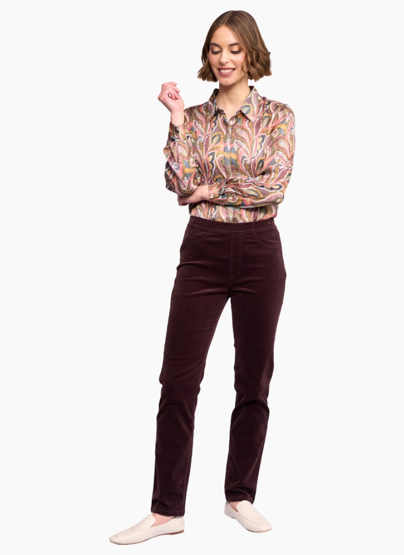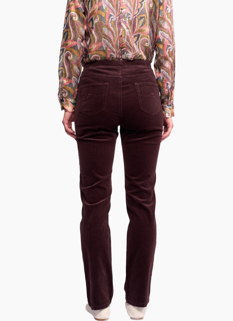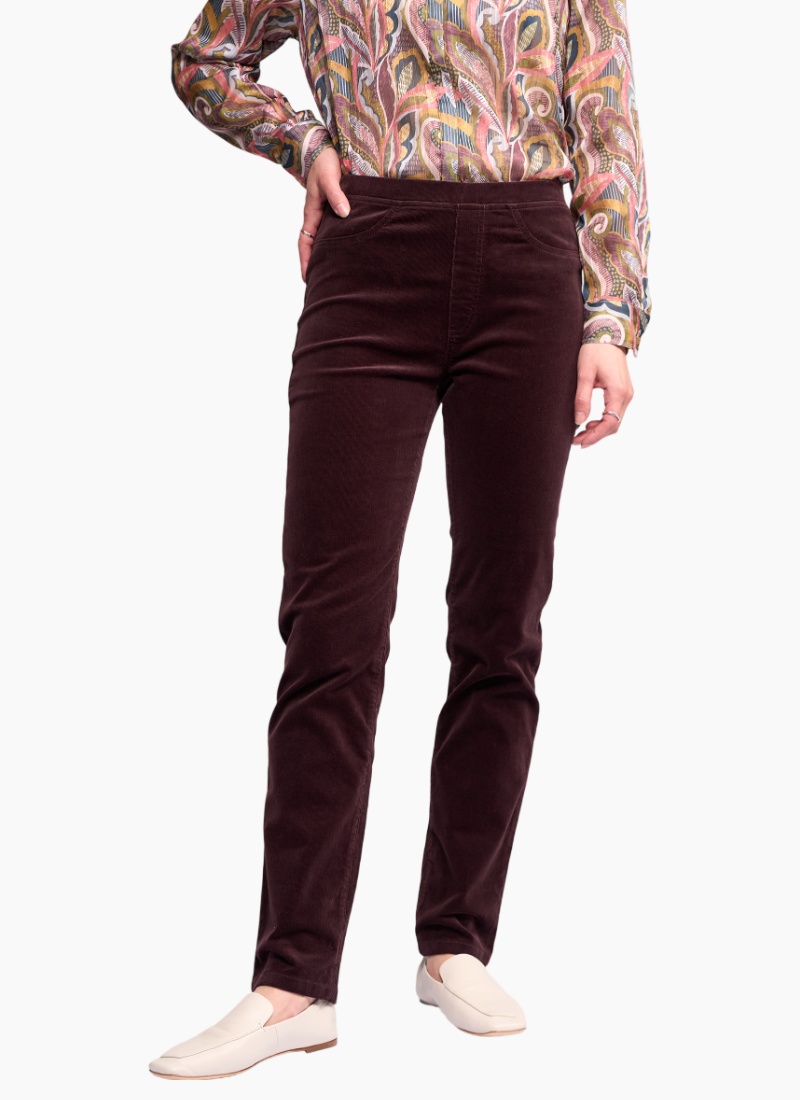 Full-length slim pant in a soft stretch pinwale cord. Made in an easy pull-on style with an elasticated waistband, this pant offers a smooth, comfortable fit, finished with streamlined detailing including a faux fly, faux front pockets, and back patch pockets. Slim leg, full-length pinwale cord pant Soft stretch pinwale cord for comfort and the perfect fit Pull-on style Elasticated waistband Faux fly Two faux front cutaway pockets Two back patch pockets with ‘V’ stitching detail Vassalli embroidery above wearer’s right back pocket