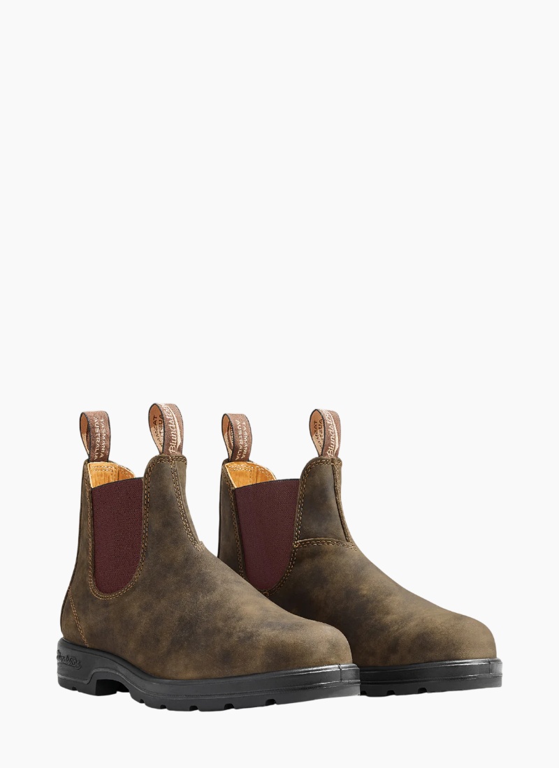 Introducing the Blundstone 585 Rustic Brown. Classics for a reason. Renowned for legendary comfort Blundstone's signature #585s deliver all the durability and outstanding shock absorption with every step. The supple Rustic Brown water-resistant premium leather uppers will mold to your foot for that worn-in feeling. Legendary comfort, timeless design. * We have listed in Blundstone sizing * Please check Blundstone website for size guide to ensure correct fit. From our instore fit testing we have found that Blundstone 6 = womens 9 (or size 40) Material: Leather.