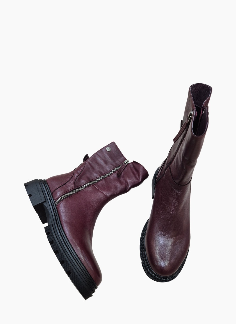 Introducing the Racier Boot Mahogany from Belle Scarpe. This striking ankle boot in mahogany leather pairs modern edge with refined craftsmanship.