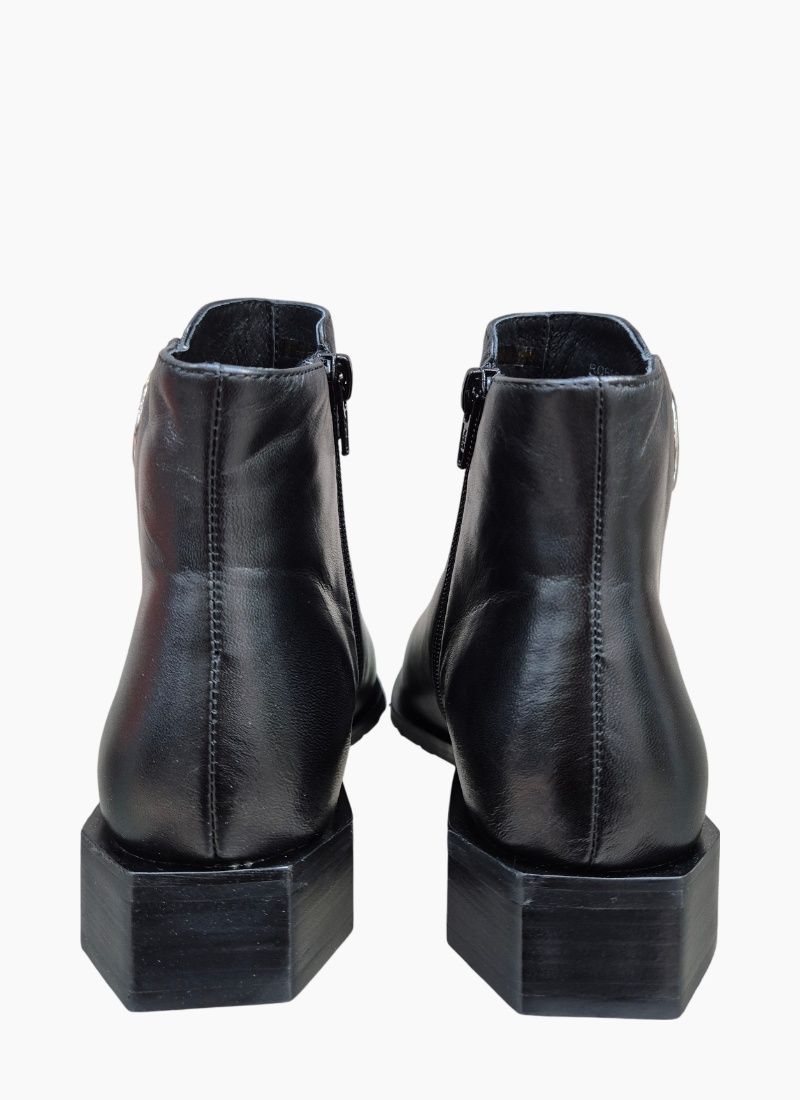 Introducing the Roberta Boot Black from Belle Scarpe. A refined ankle boot that pairs architectural detail with polished leather elegance.