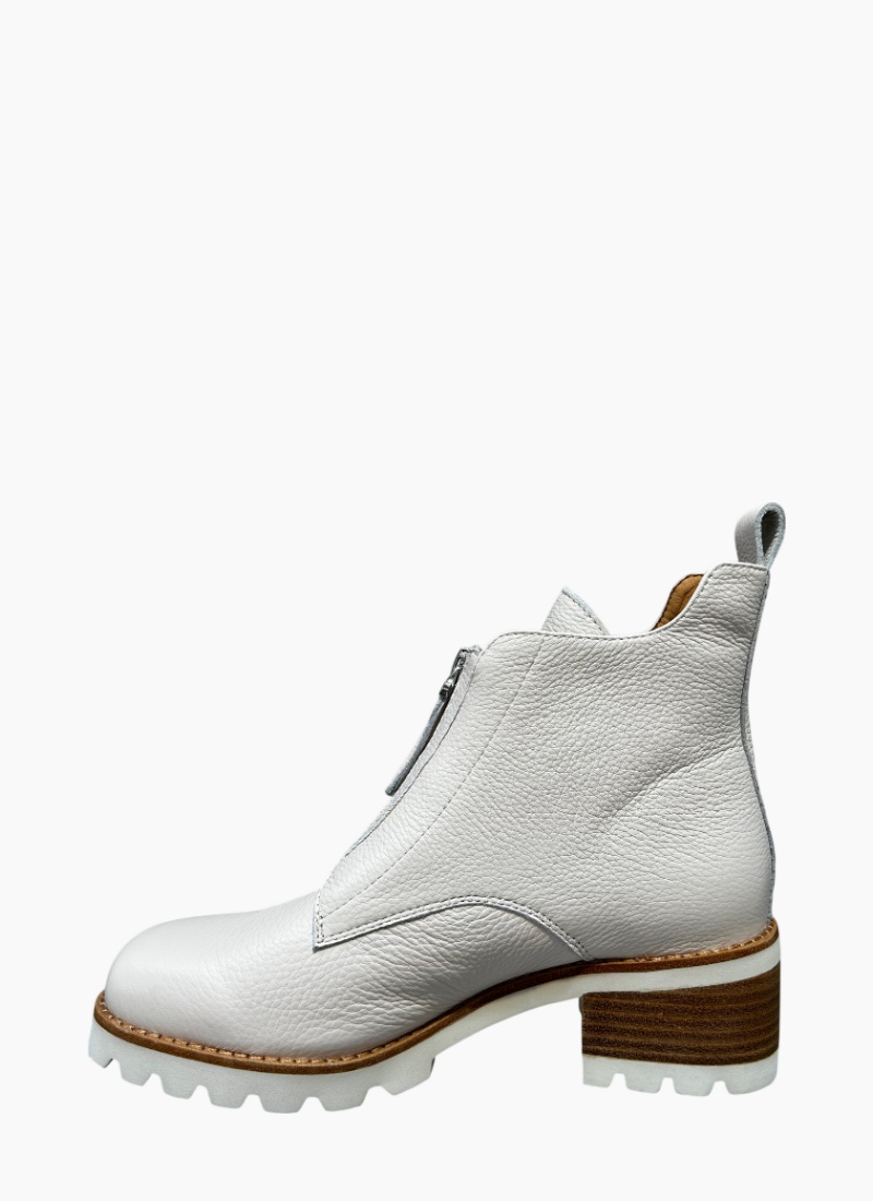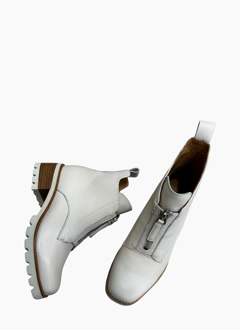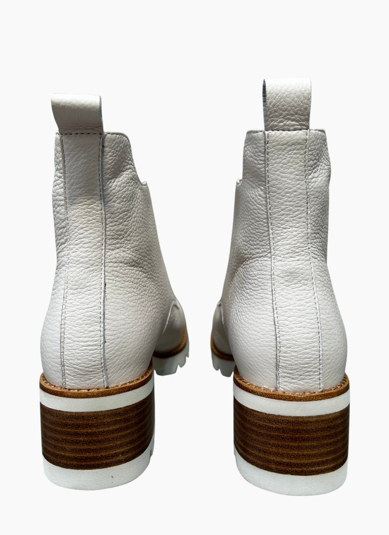 Introducing the Dazzler Ankle Boot Bone from Bresley. This timeless ankle boot blends pebbled bone leather with a modern lug sole for a polished, effortless look.