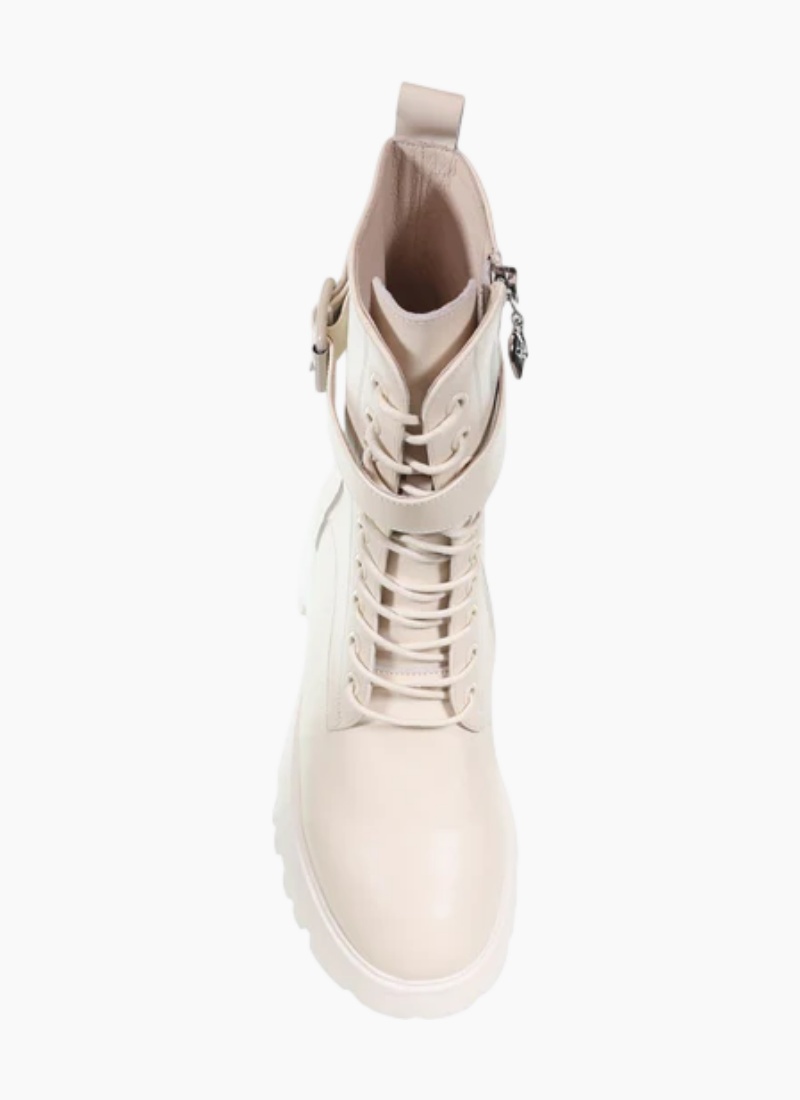 Introducing the Jasper-Ivory boot from Minx. This chic ivory ankle boot balances a refined leather finish with a bold, modern silhouette.