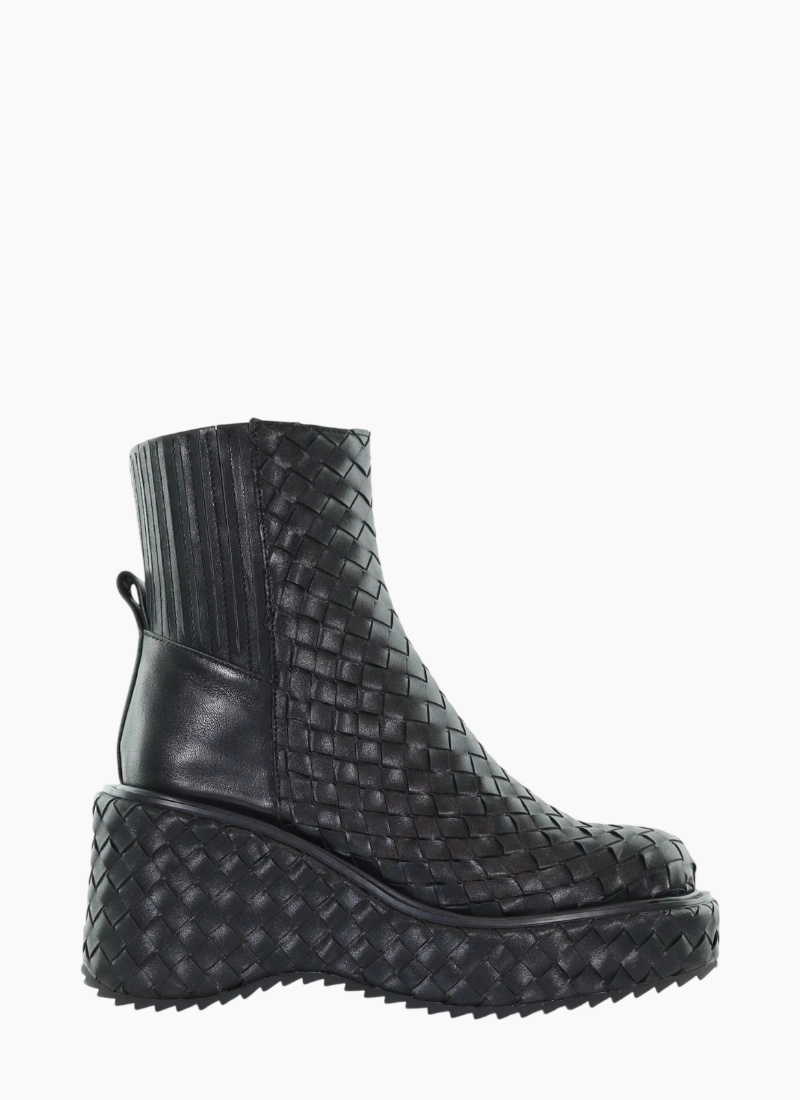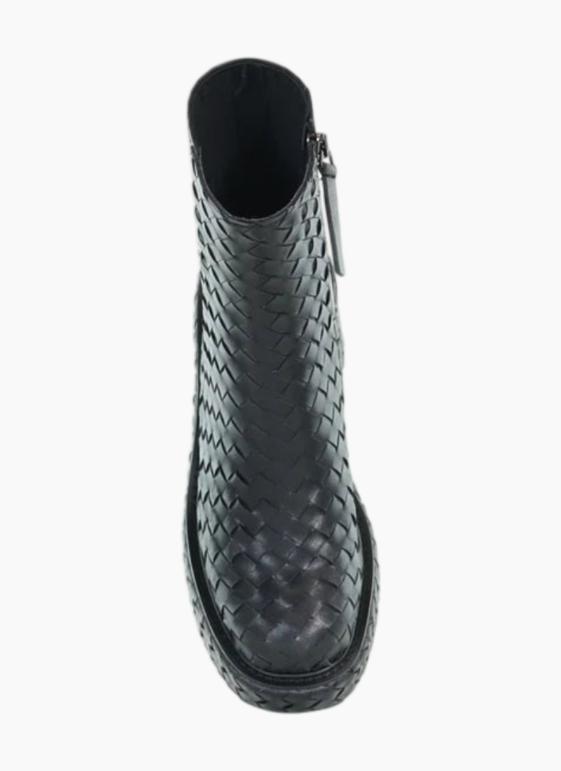 Your favourite Tokyo boot by MINX has been taken to the next level. Boasting a full leather hand woven upper and wrapped mid sole, with leather-covered elasticated gusset at the back to ensure a perfect fit for all ankle widths providing comfort and ease of wear. The same Tokyo platform sole you know and love with added texture for added style on cool winter days.Upper - Leather Lining - Leather Outer Sole - Rubber platform Platform height 3.5cm front ,& 8.5cm back