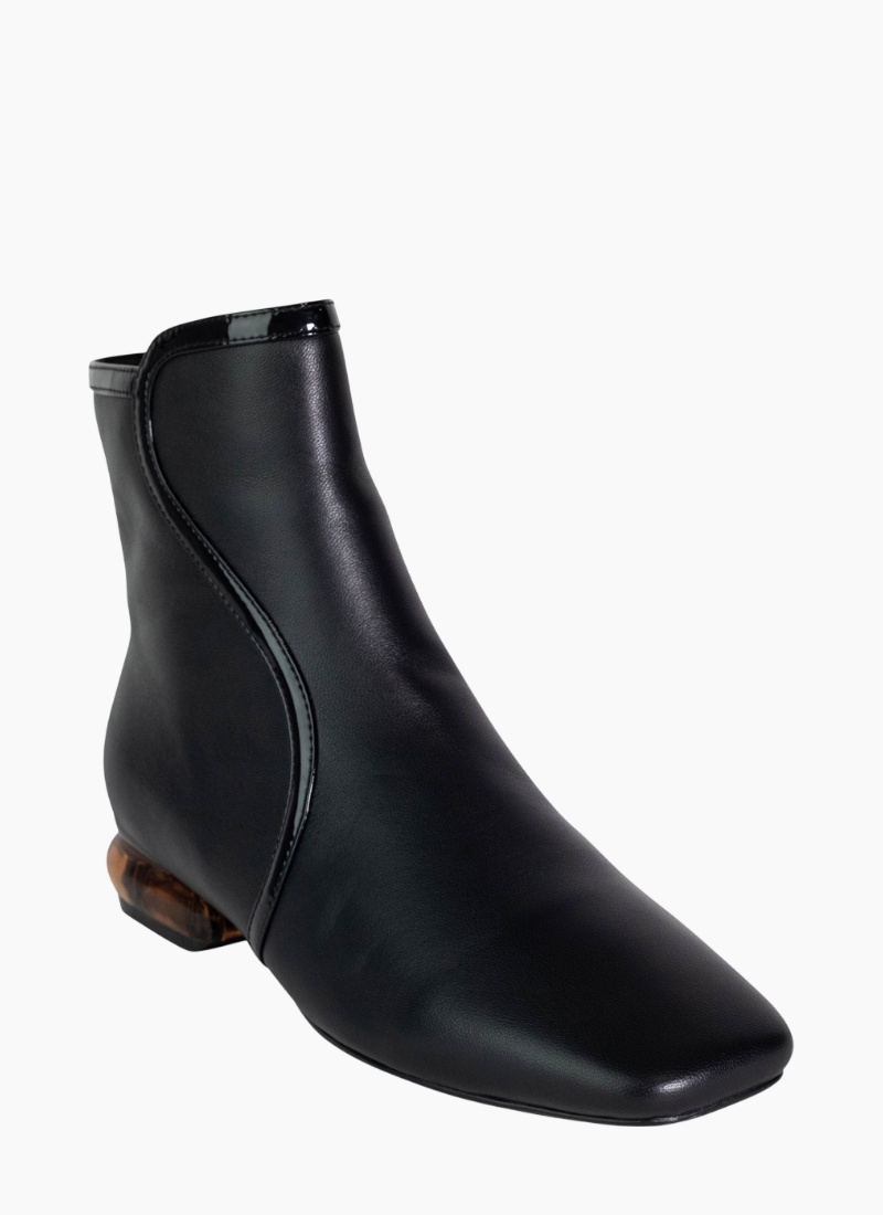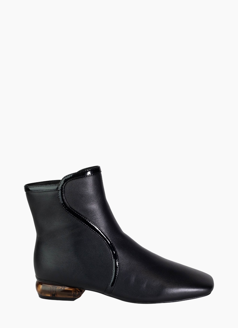 - Black ankle boot from The Shoe Collective. A modern, pared-back silhouette in classic black with glossy patent detailing for a refined finish.