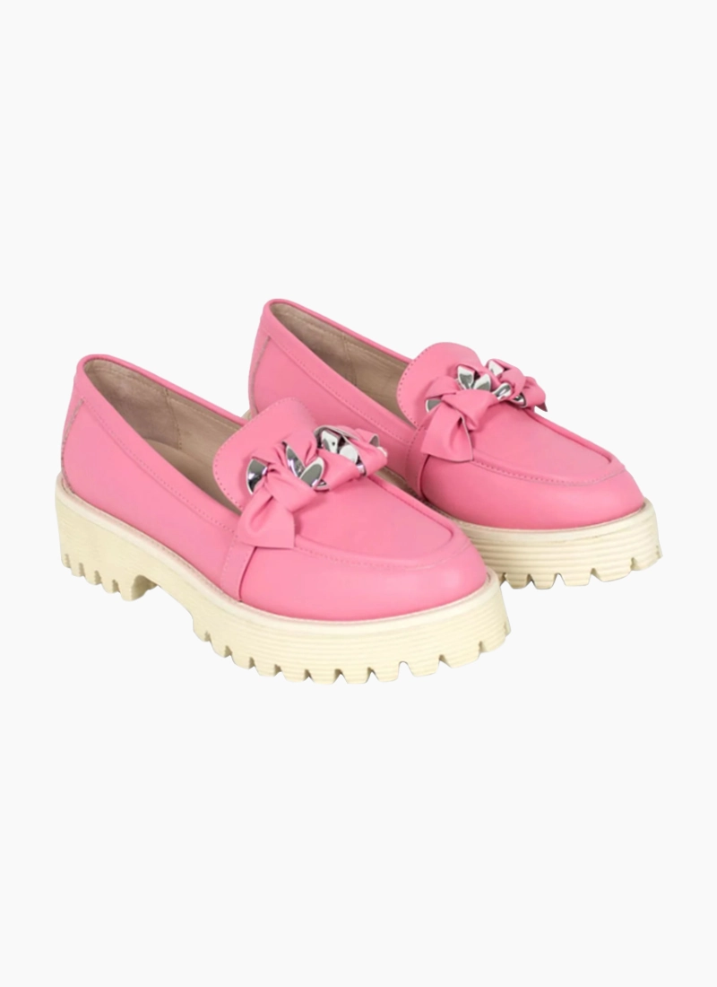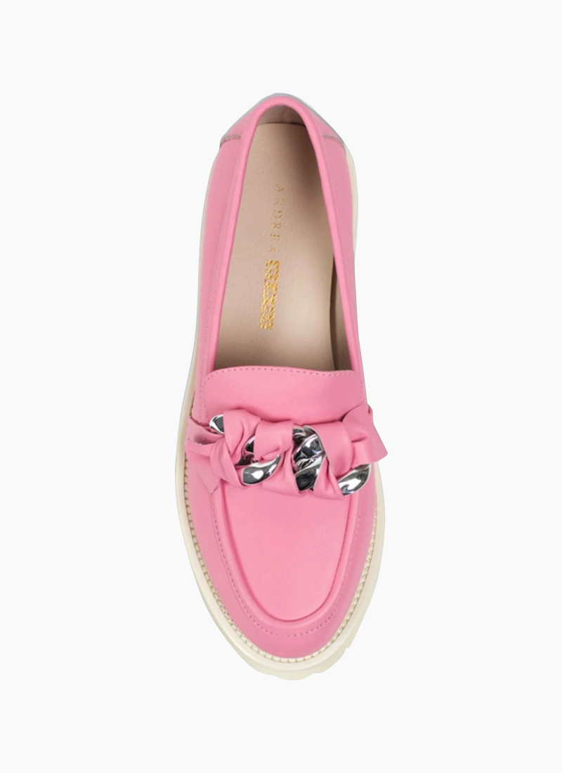 Add these classic chunky women's leather loafers to your capsule wardrobe. With a comfortable platform sole unit and chain embellishment, Felicity in Pink by Andrea Biani offers comfort and sophistication to your everyday edit.Big Fit - Would recommend sizing downHeel height: 4 cmWomen's loaferLeather upperLeather liningChain embellishment