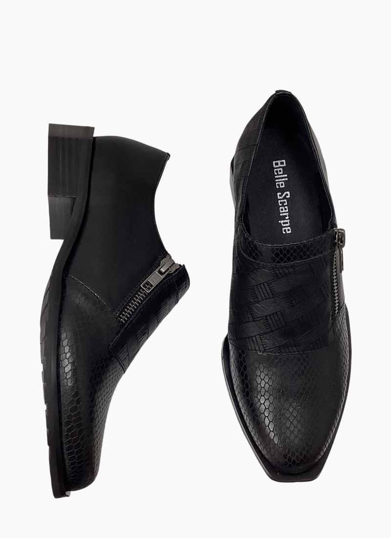 ROMEO by BELLE SCARPE is a standout leather shoe that blends modern style with everyday practicality. Featuring a beautifully textured leather upper and a distinctive hexagonal heel, it delivers a refined look with a confident edge. The outer zip allows for easy on-and-off, while a concealed elastic gusset provides a secure, flexible fit that keeps you comfortable throughout the day.