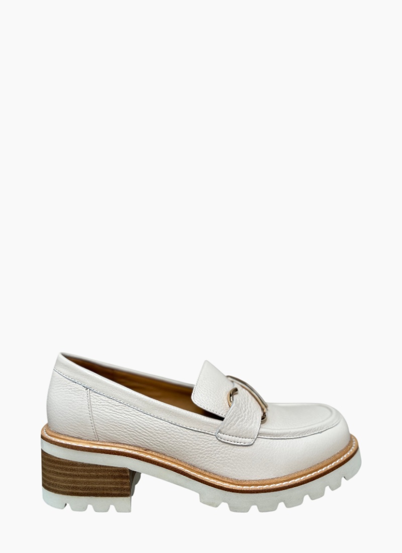 Introducing the Dylan Loafer Bone from Bresley. A refined leather loafer in a soft bone colour that elevates everyday dressing with a contemporary stacked-heel detail.