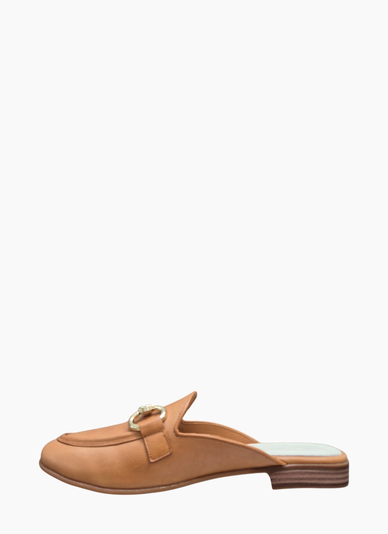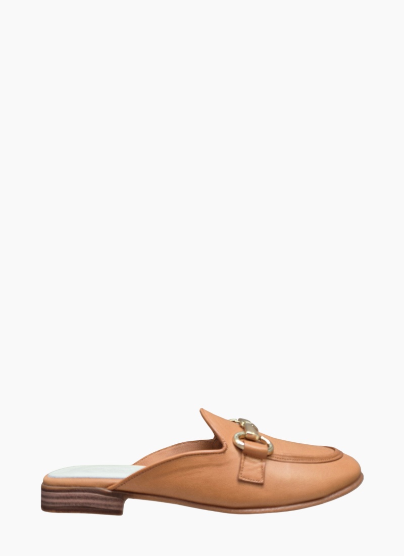 - Soft leather-lined footbed provides gentle support, making these tan mules ideal for everyday styling
