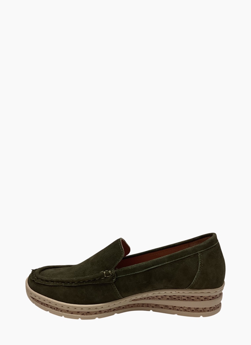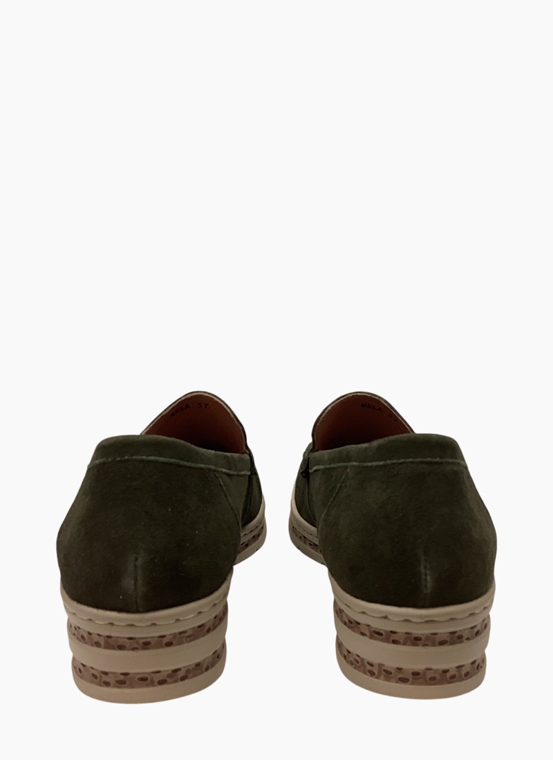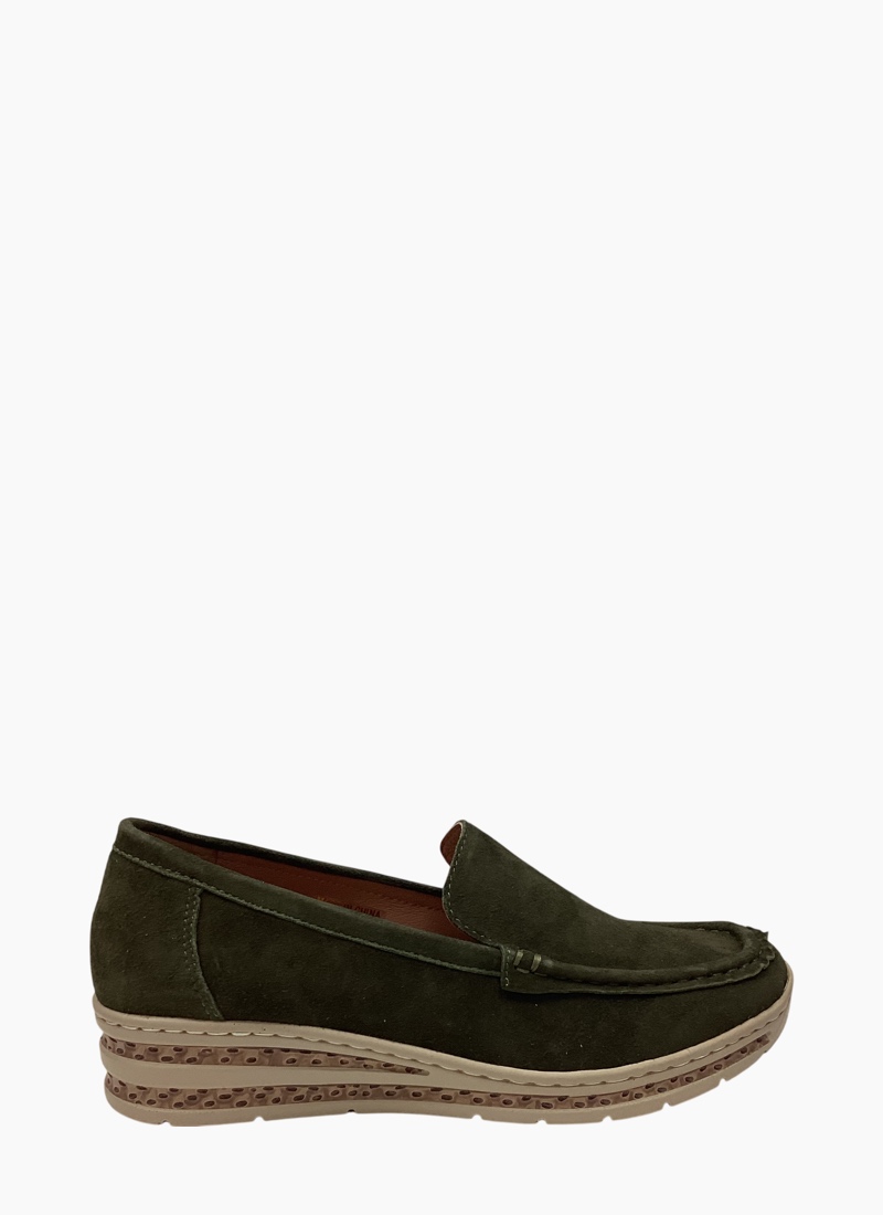 Classic loafer with suede upper and low platform sole for added height while remaining lightweight and easy to walk in. Practical and comfortable for everyday wear.