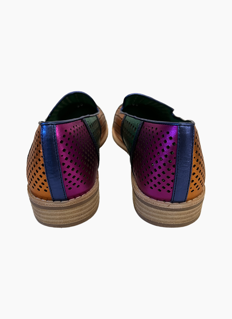 Crafted from delicate laser cut leather atop a Scandi stacked sole, ALYCIA by Django & Juliette is a compelling slip-on loafer that makes a unique addition to your capsule wardrobe, effortlessly layered and styled for any occasion.