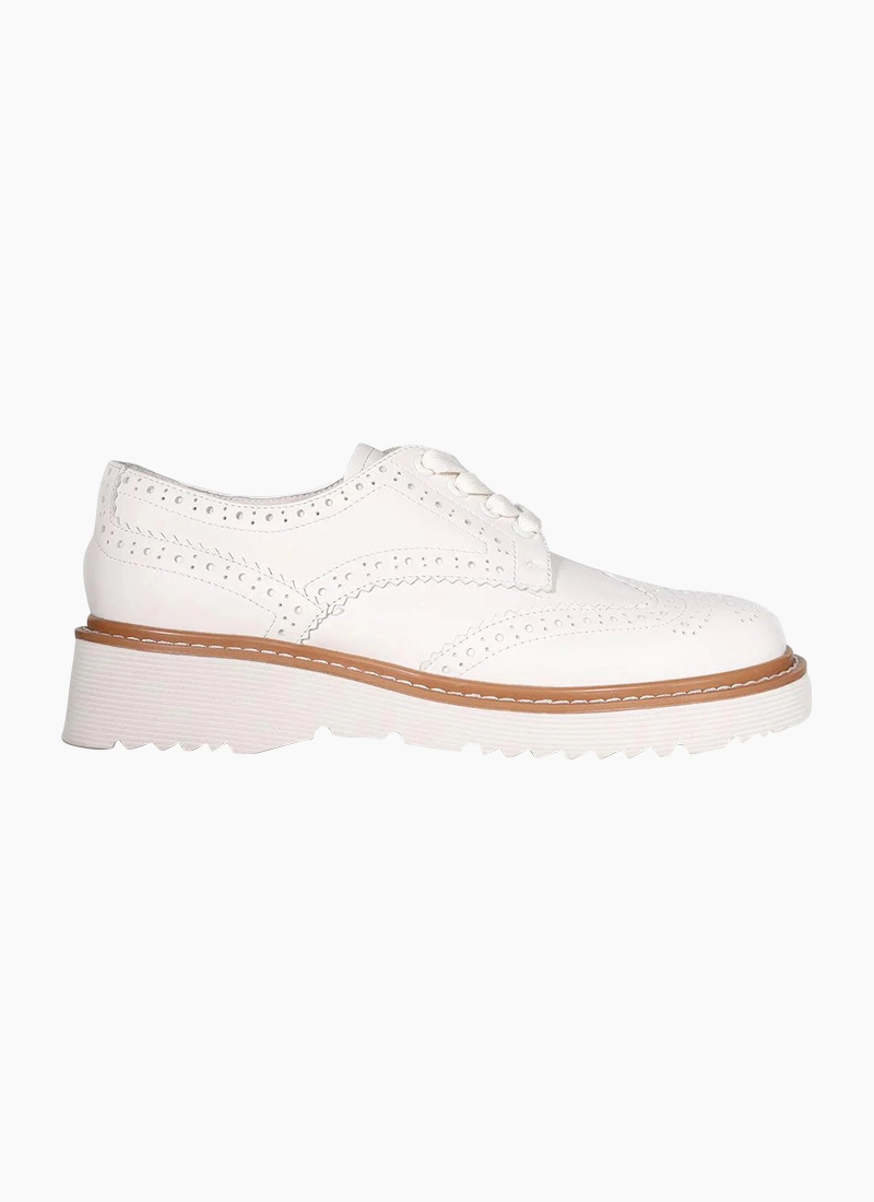 Step into timeless sophistication with our new summer season Oxford brogue. Crafted in soft seasonal leather colours on a lightweight wedged flatform, it offers all-day comfort. The intricate gimping details add a touch of refinement and provide a stylish option when you're looking for something more polished than sneakers. Pair with tailored trousers for the office or distressed jeans for a chic casual statement.
