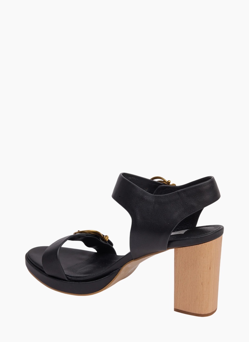 - Gold-tone circular buckles add a signature luxe touch across the ankle and toe straps