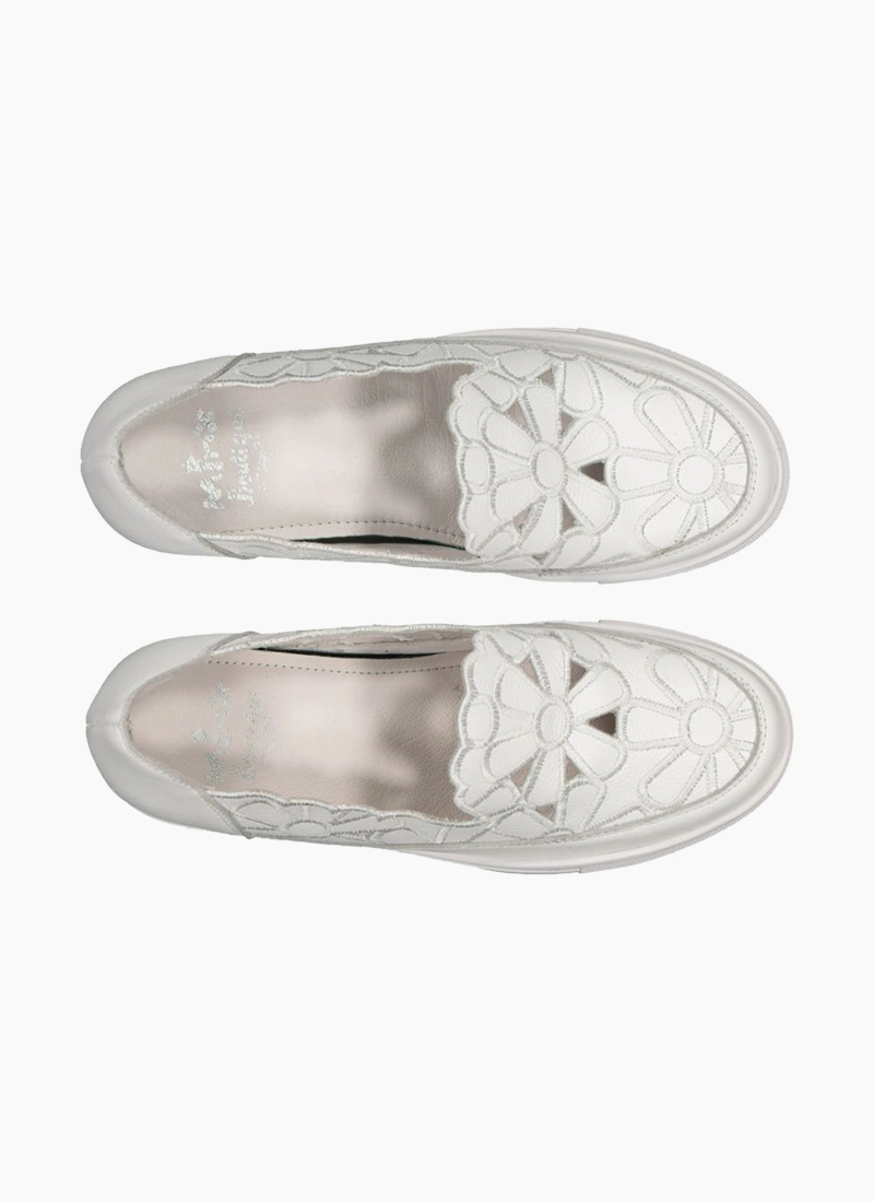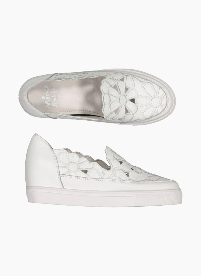 DescriptionFor a classic look with a twist, you can't go wrong with the Flower Wedge! The timeless design has been given a new pop of colour, with dark coral, persimmon, midnight, and classic white to choose from. This stylish and versatile shoe features a unique floral cut-out design with stitched flowers that add a touch of elegance to any outfit. The 5cm hidden heel lift provides subtle elevation and comfort, making it perfect for formal occasions or everyday wear.