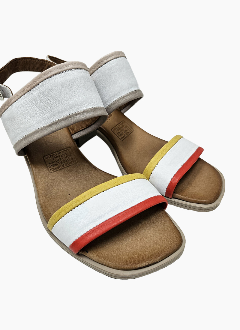 A smart leather sandal with a buckle accent and cushioned footbed for all-day comfort.