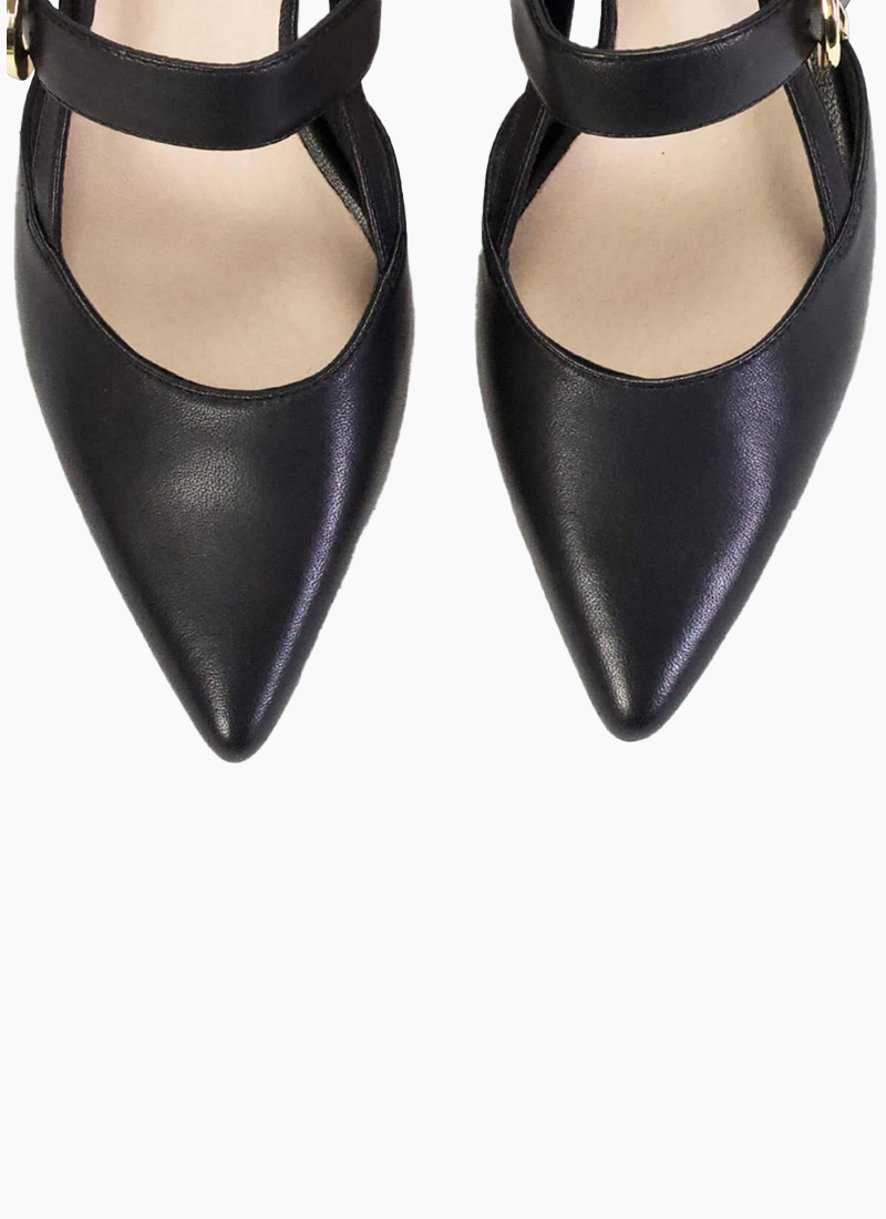 These elegant leather heels by Top End are a sophisticated must-have for any wardrobe. Asten provides a polished, refined finish to your look. The pointed toe adds a sleek touch, while the buckled arch strap and slim heel strap offer a secure and stylish fit. Pair them with your favorite dresses or tailored pants for an effortlessly chic ensemble.