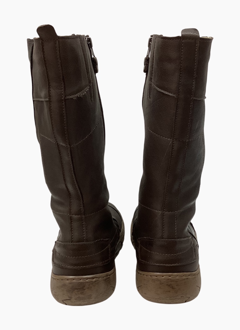 - A versatile brown hue and durable construction make this knee boot a wardrobe staple for season-to-season wear