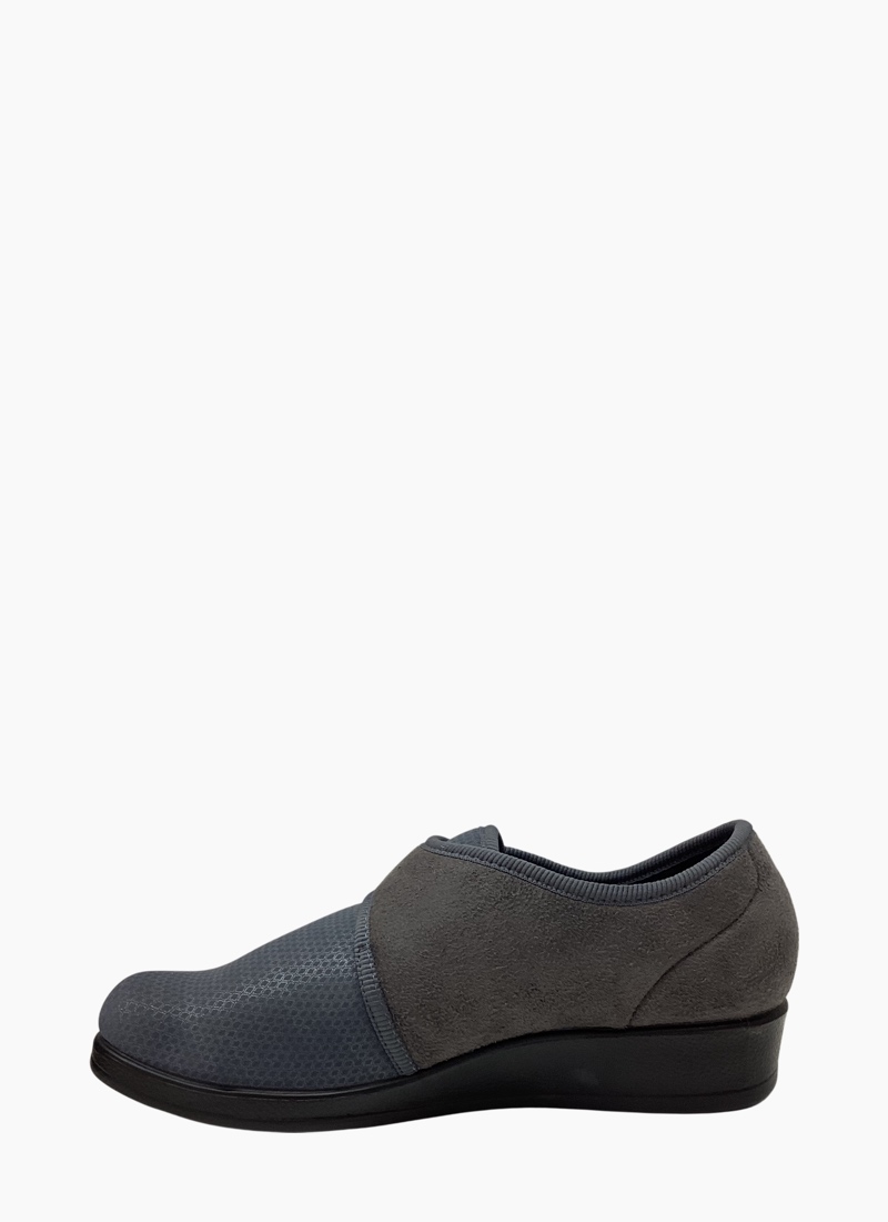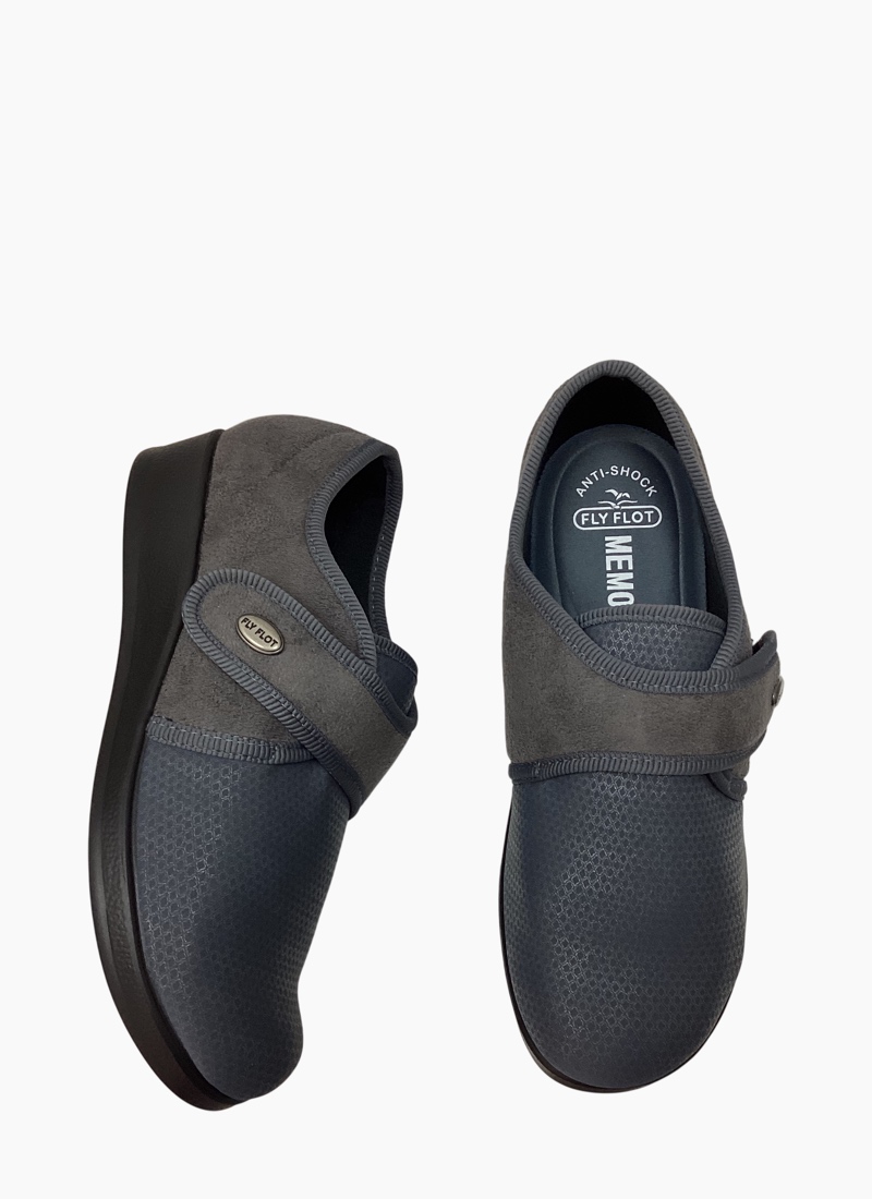 Introducing the Fly Flot Q3886 YX Shoe in Anthracite. This orthotic-friendly style combines practical support and everday comfort. Perfect little house shoe! • Incredibly soft stretch uppers with velcro closure for a superb fit • Removable insoles • Non-slip outsoles • Made in Italy