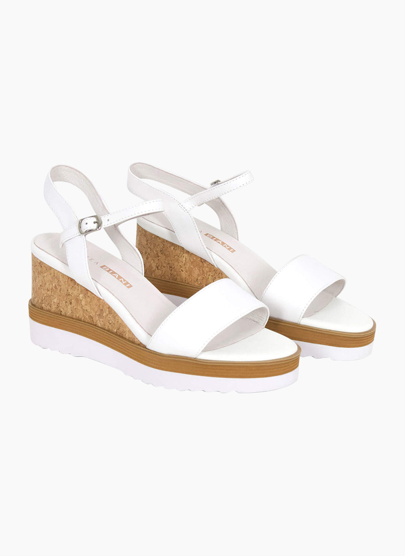 Heel height: 8 cm Platform height: 2.5 cm Leather upper Leather lining Adjustable ankle strap Buckle fastening Wedge design Open toe Designed in New Zealand