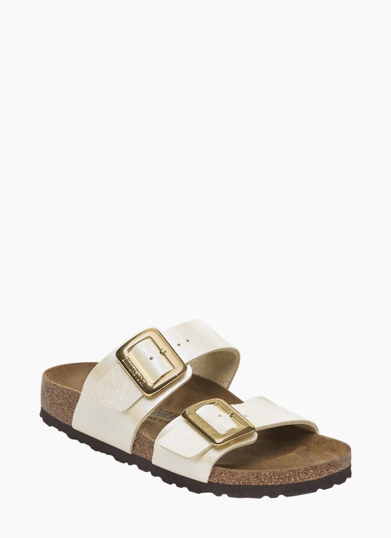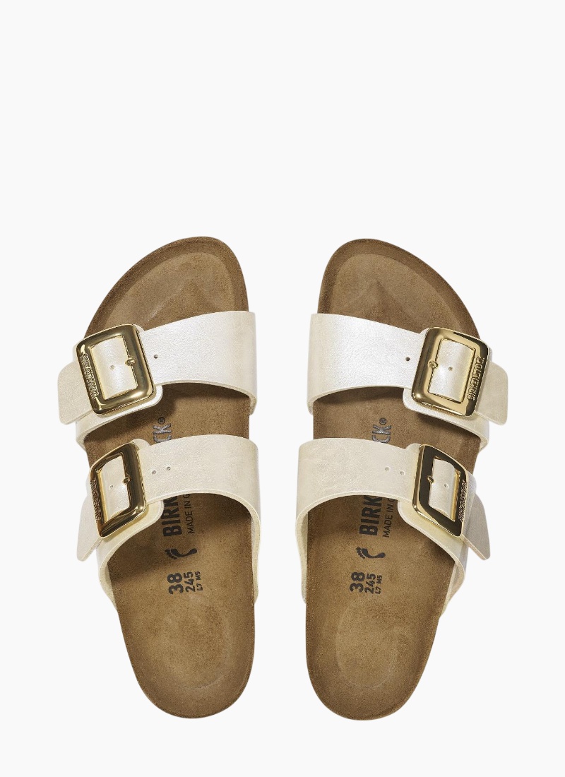 The BIRKENSTOCK Sydney proves that fashion and functionality can go hand in hand. With its two simple straps, it’s a real hit with women who want both high fashion and comfort. The shiny, gently rounded padded buckles are especially eye-catching. The upper is made from the skin-friendly, hard-wearing synthetic material Birko-Flor® with a shiny patent coating.