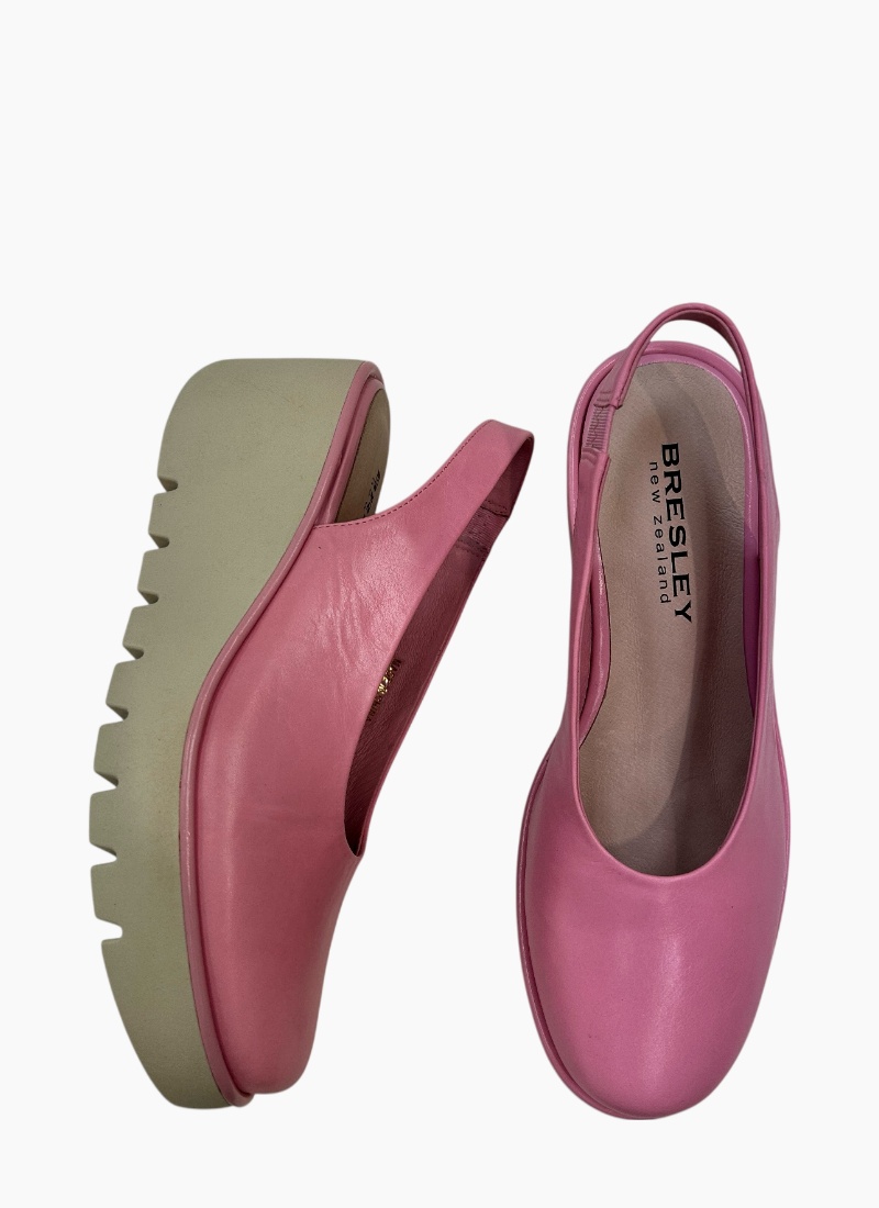 Introducing the Party Wedge Pink from Bresley. This statement wedge sandal brings a fresh pop of green to your shoe collection and lifts outfits with confident style.