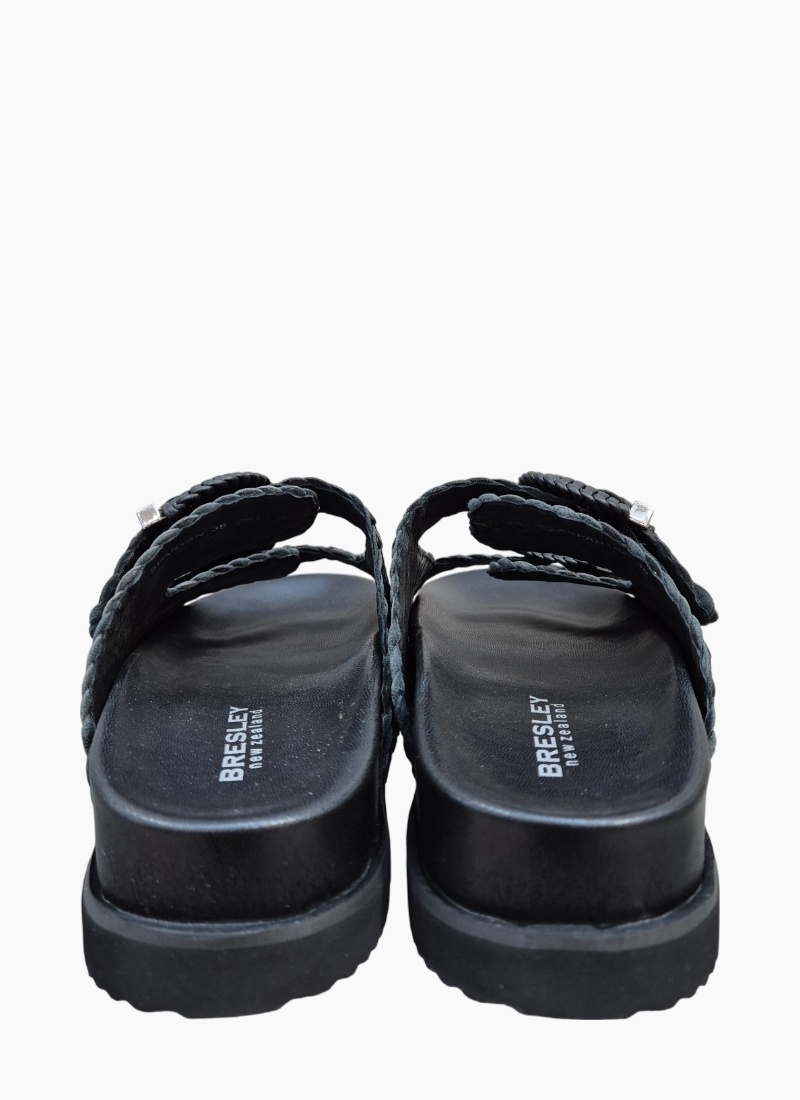 Introducing the Spartan Black Slide from Bresley. This contemporary slide showcases a woven leather upper and bold sole for a refined yet relaxed finish.