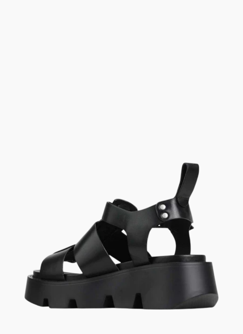 Introducing the KAILAN sandal from EOS. This bold black leather sandal combines chunky platform style with everyday comfort.