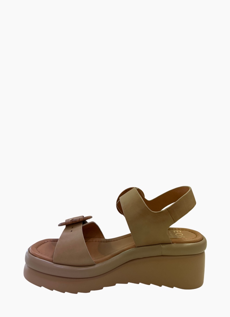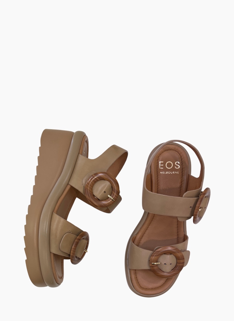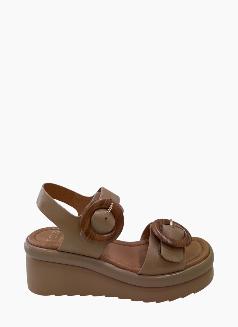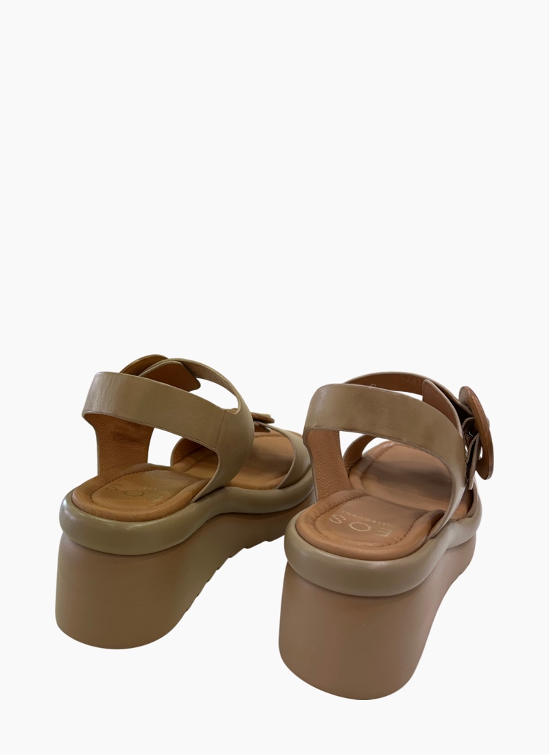Introducing the Menorcas Wedge Sandal from EOS. A chic, elevated sandal that pairs a Desert colour leather upper with a sculpted wedge sole for easy, all-day wear.