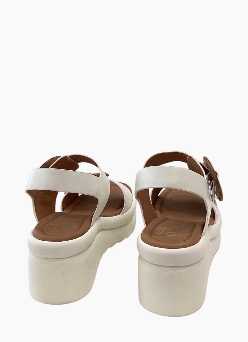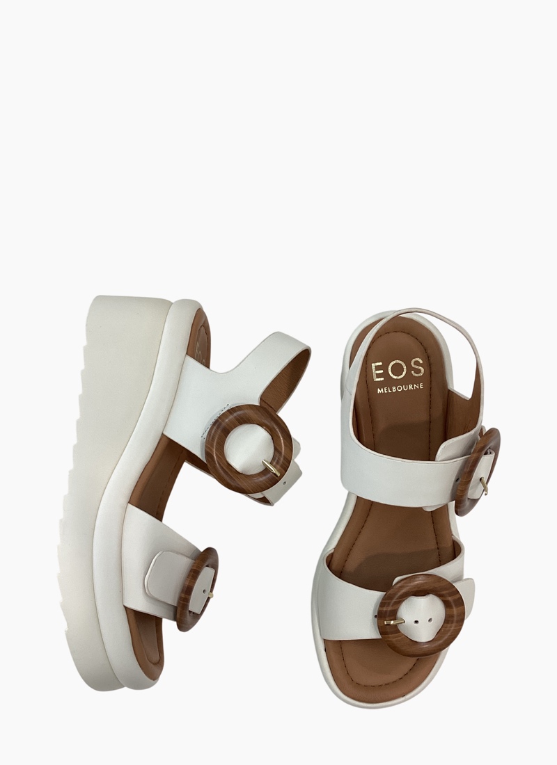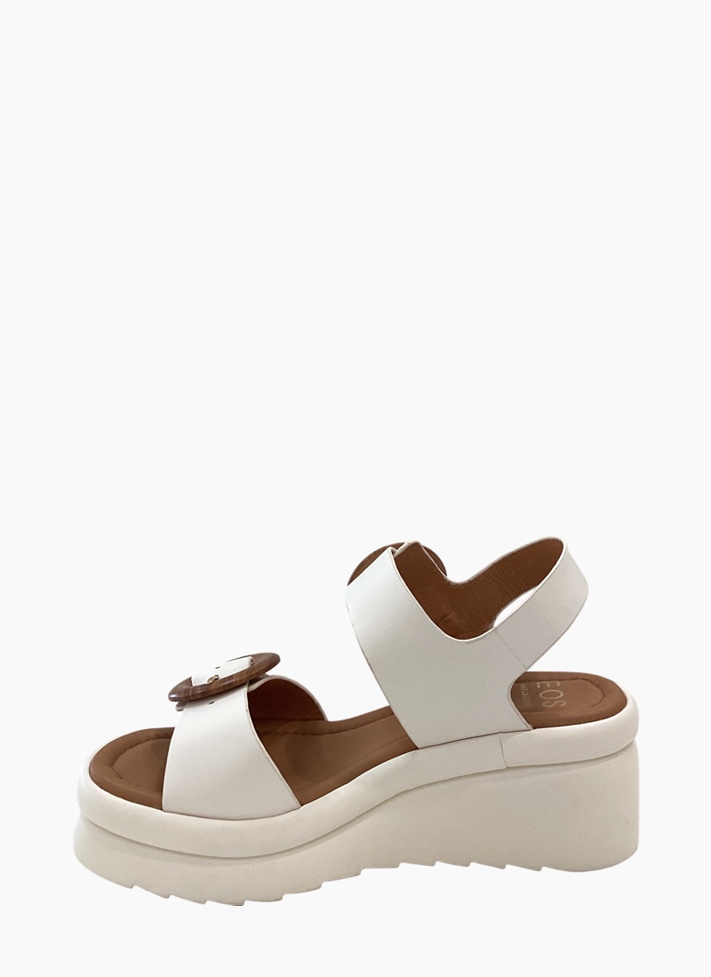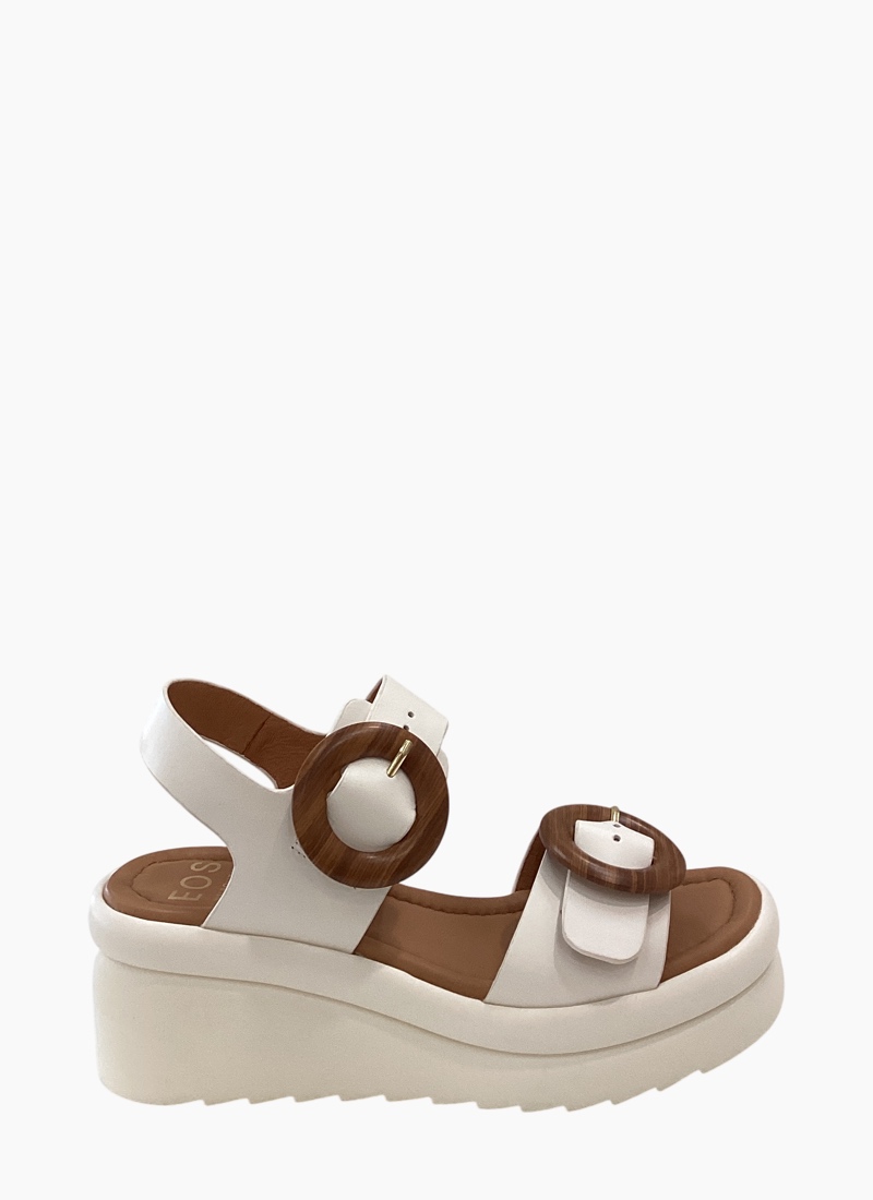 Introducing the Menorcas Wedge Sandal from EOS. A chic, elevated sandal that pairs a Bone leather upper with a sculpted wedge sole for easy, all-day wear.