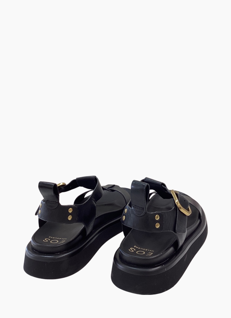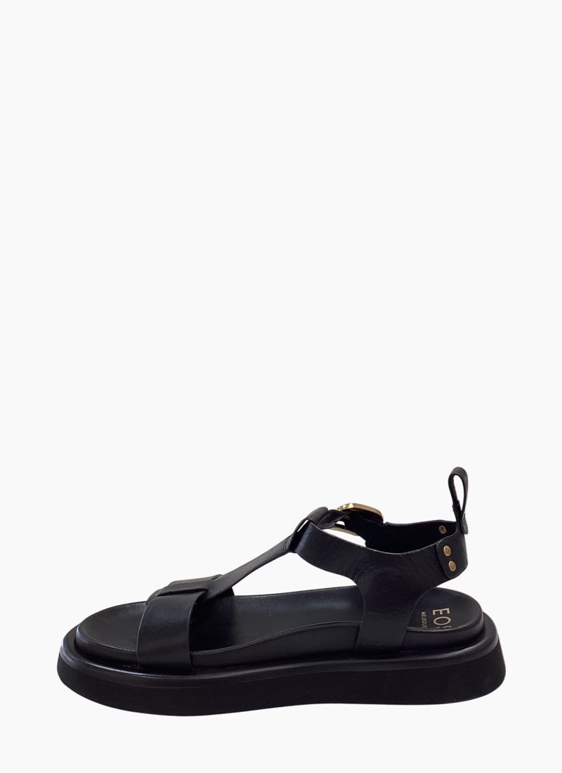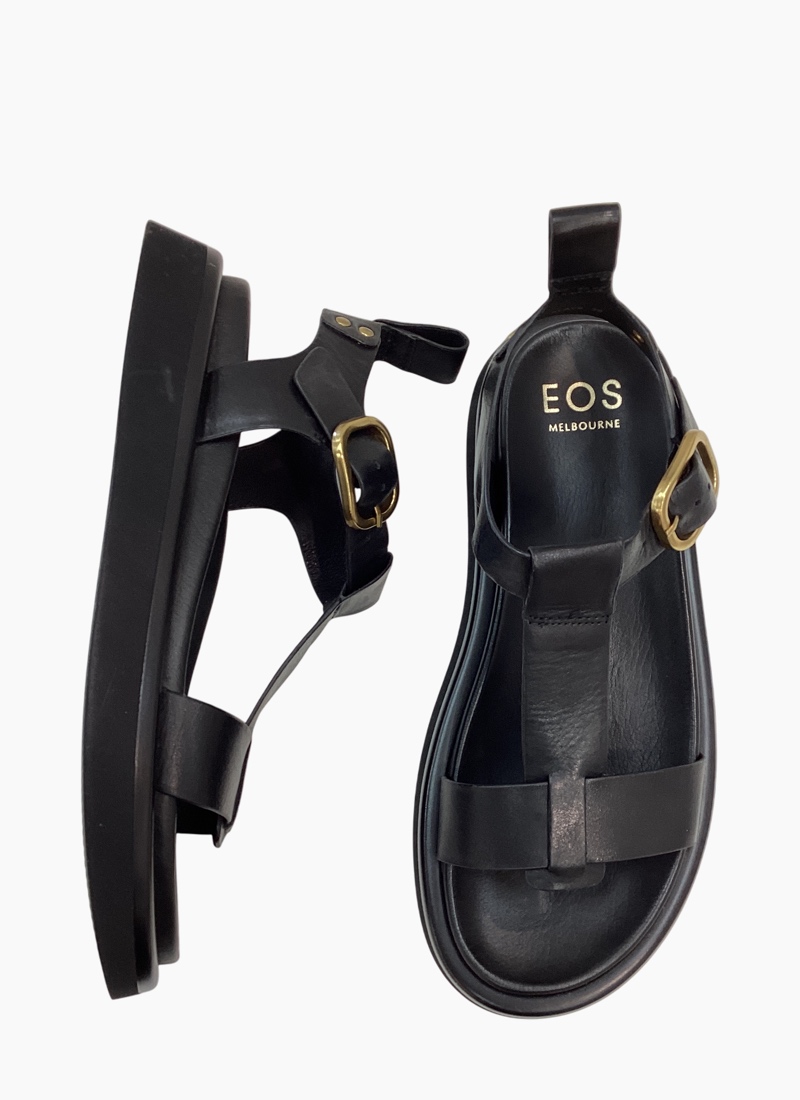 Introducing the EOS Slays Sandal Black. This contemporary women's Sandals silhouette in classic black leather blends elevated design with everyday comfort.Anatomical Footbed: Designed to provide excellent support, the footbed is wrapped in luxurious top-grain cow leather. Its lightweight construction, combined with hand-burnished edges, ensures a comfortable and custom fit. Gold-Rated Leather Upper: The sandal features a high-quality gold-rated leather upper, sourced from the Leather Working Group. Hand-burnished on the last for a smooth, rich finish, it offers both durability and elegance. T-Bar Design: The standout T-bar style is both on-trend and timeless, adding a chic touch to any outfit while providing an elegant silhouette.