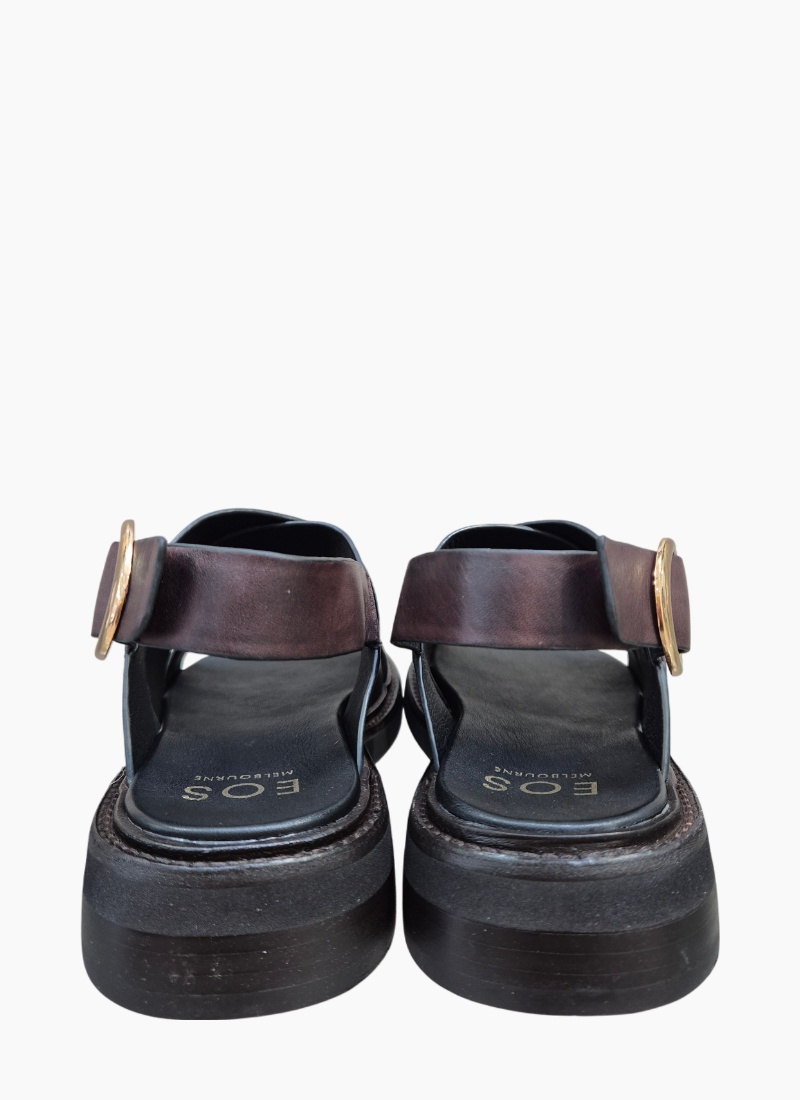 Introducing the EOS Starlet Chestnut Sandal. This refined platform sandal blends sculptural presence with easy everyday wear.