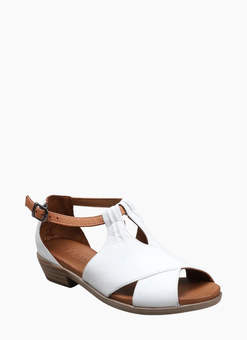 Introducing the LE SANSA DIGBY WHITE TAN from LE SANSA. This breezy, feminine sandal blends modern simplicity with everyday comfort.