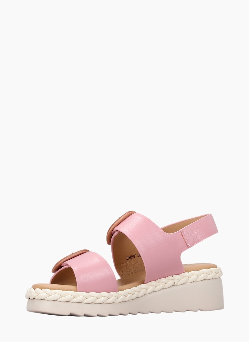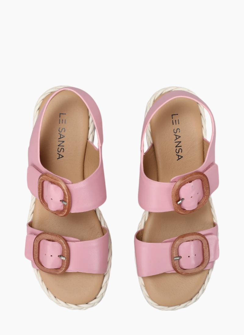 Introducing the LE SANSA EMERY BABY PINK sandal from LE SANSA. This playful yet refined baby pink sandal lifts casual and holiday looks with a flattering platform and bold buckle details.