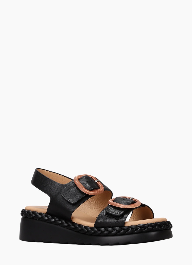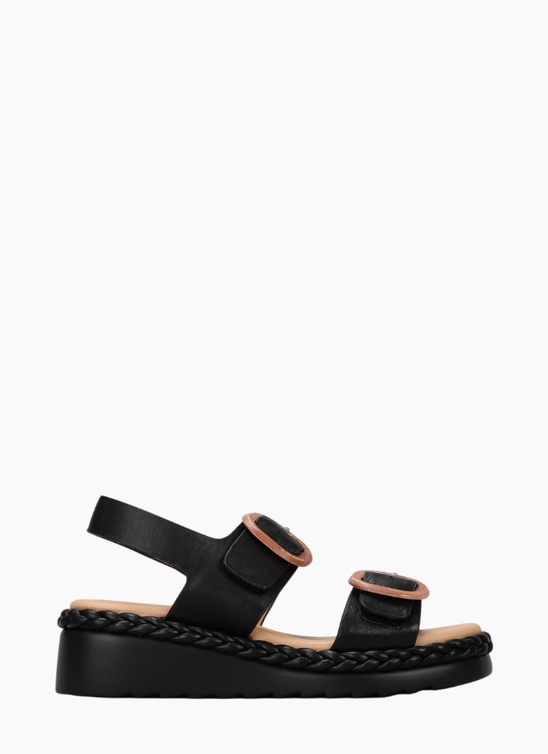 Introducing the LE SANSA EMERY BLACK from LE SANSA. A contemporary black sandal designed for effortless style and comfort.