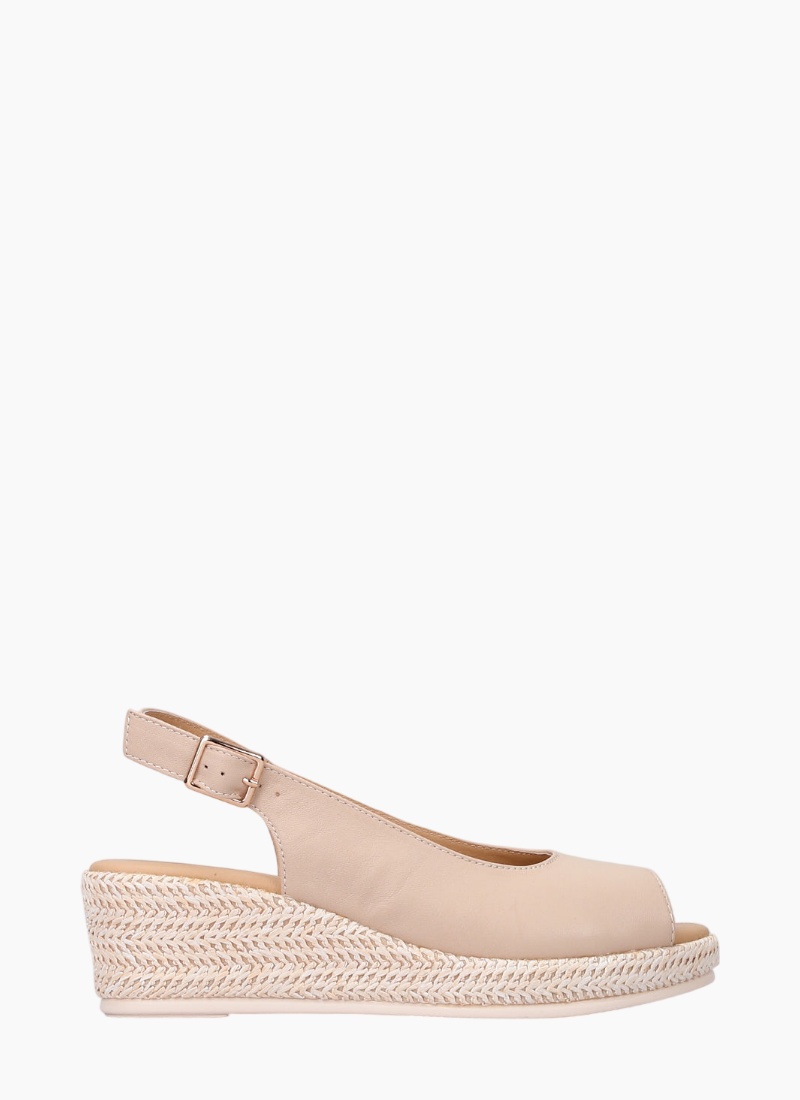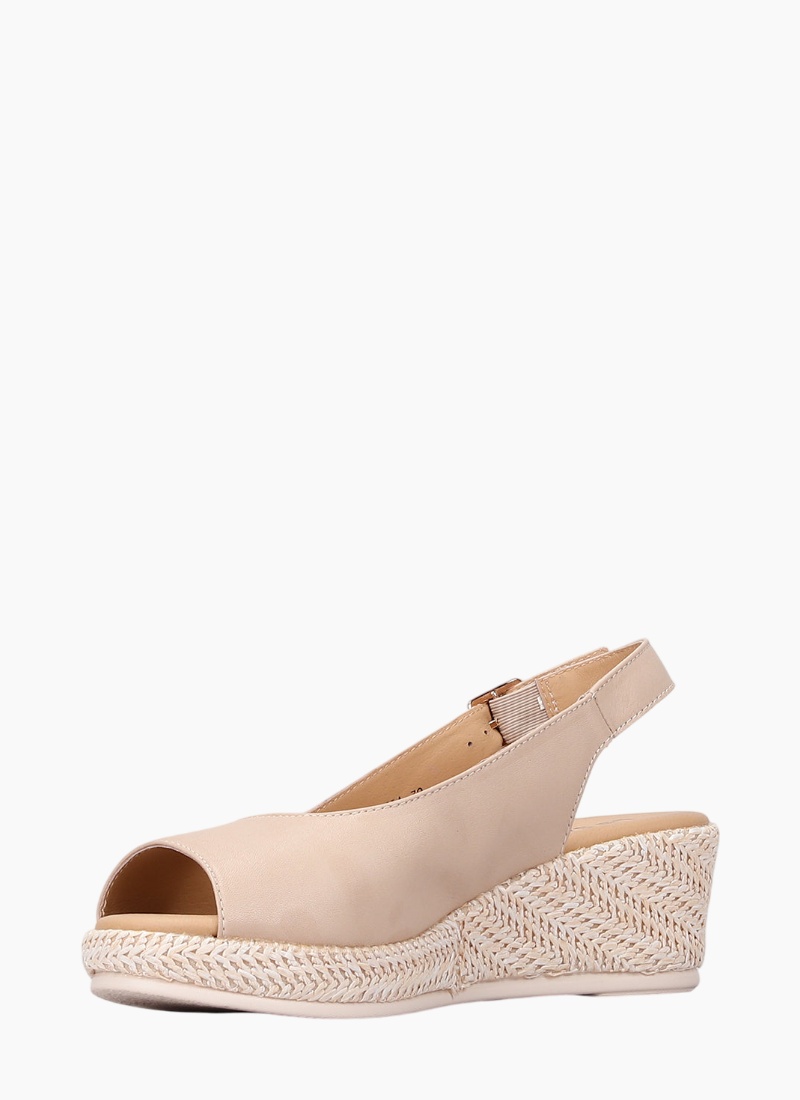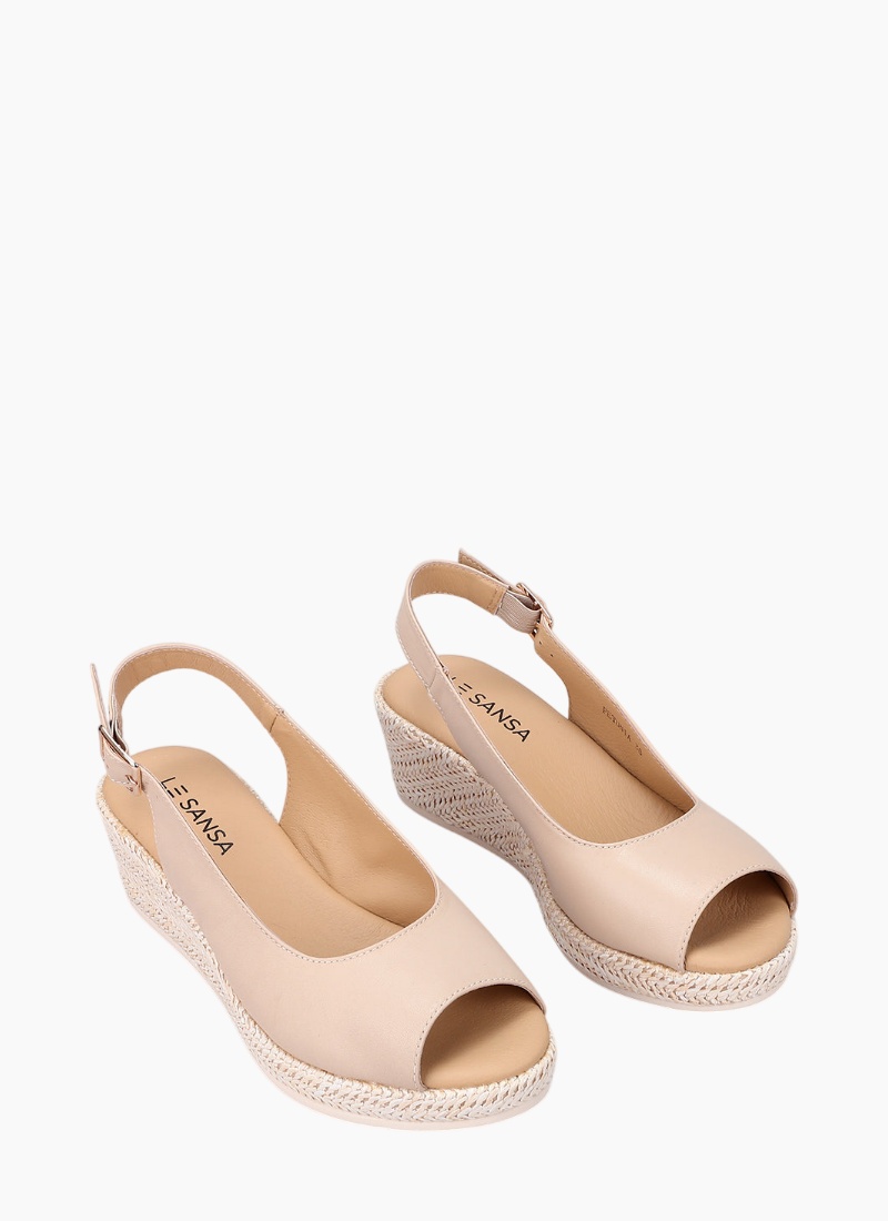 Introducing the LE SANSA Petunia Beige from LE SANSA. This elegant wedge slingback sandal blends effortless comfort with refined, summer-ready style.