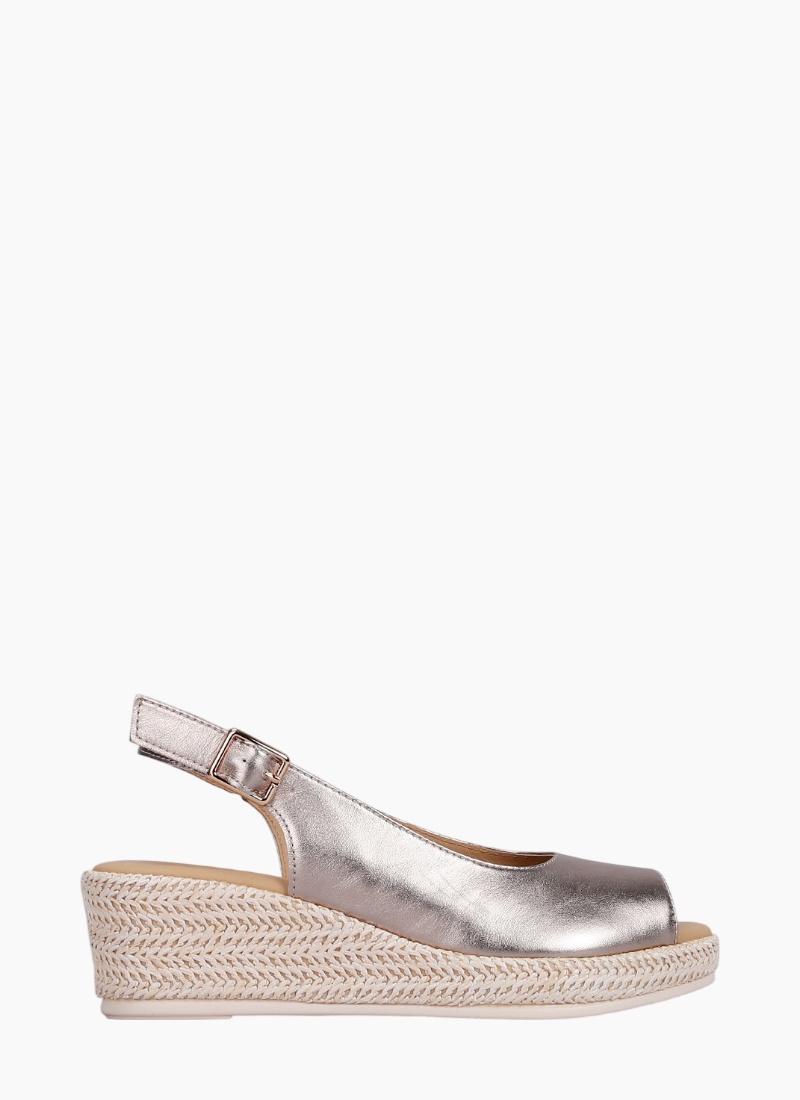 - Jute-wrapped espadrille wedge adds gentle height and coastal charm