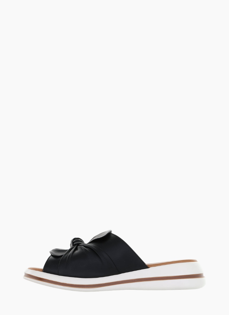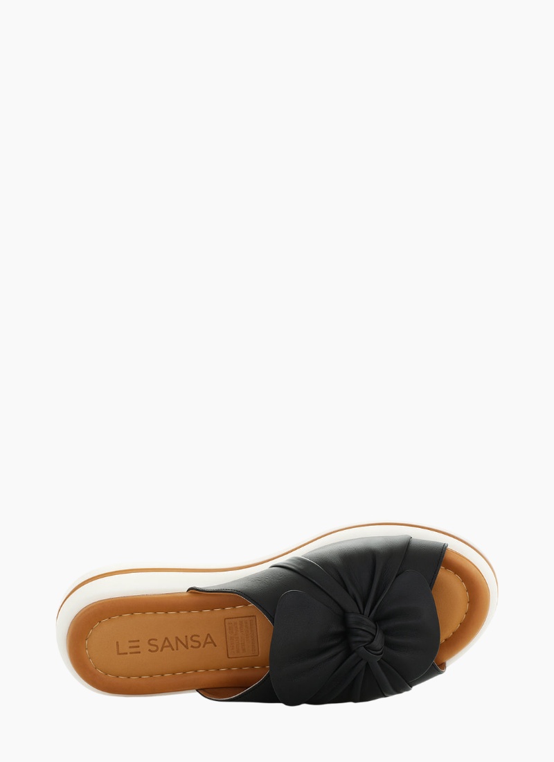 Introducing the LE SANSA Le sansa Salsa Black / tan. This stylish slide sandal blends relaxed comfort with a refined knotted leather upper.