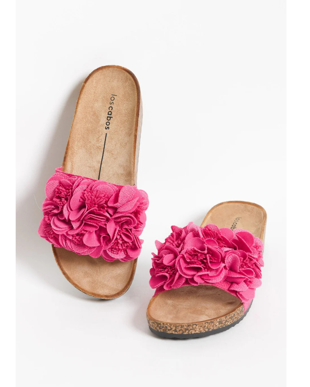 Step into summer sophistication with the CORSAGE Slides. Featuring a wedge heel for just the right amount of lift, these slides are adorned with beautiful floral embellishments that add a touch of elegance to any outfit. The CORSAGE Slides offer both style and comfort, making them an essential addition to your summer shoe collection.Textured, Vegan Upper Slip On Design Contoured, Soft, Microfibre Footbed Lightweight, Shock Absorbing Cork Midsole Non-Slip Rubber Outsole Heel Height: 4cm Designed In Australia