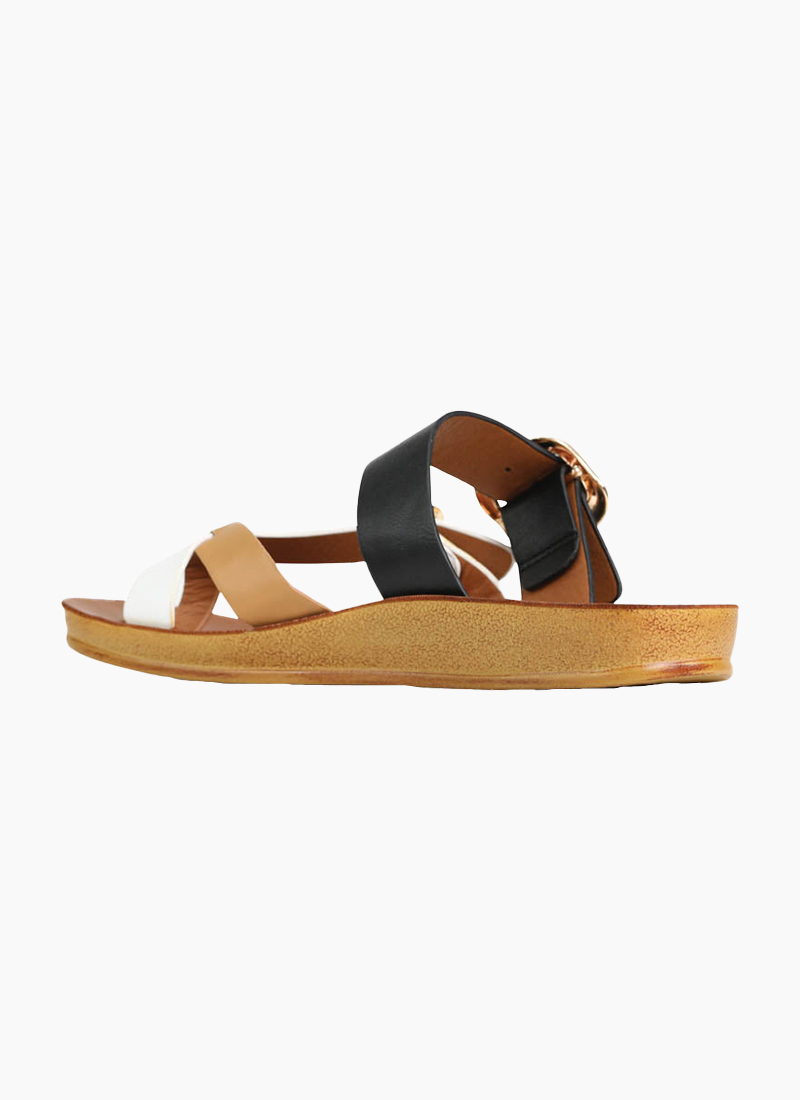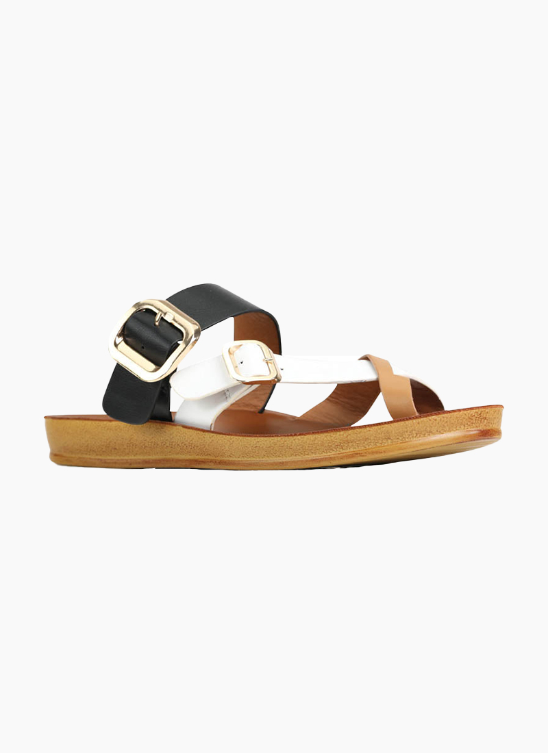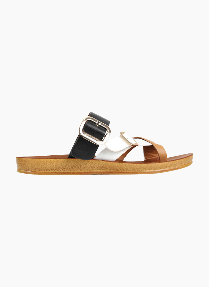 Look no further than DANY for your summer footwear needs! This slide sandal is not your average two-strap—it features eye-catching buckle details, a cross-over thong design and adjustable straps to give you the perfect fit. Shine in style - for any occasion!