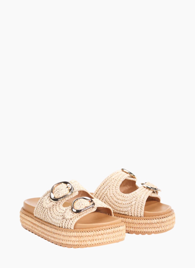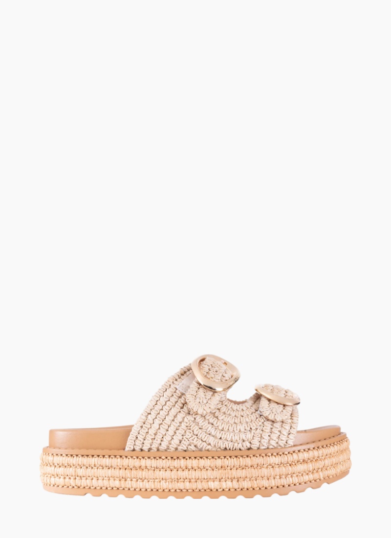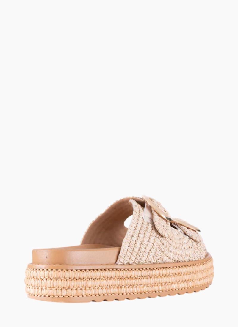 Introducing the FERRITO NATURAL from Los Cabos. This slip-on raffia platform sandal channels laid-back summer elegance with a natural-coloured woven upper and softly cushioned footbed.