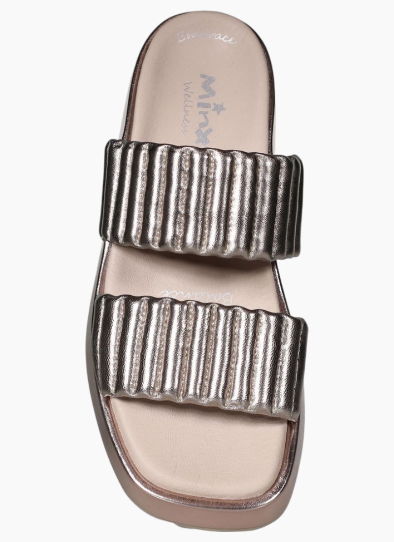 Breeze through summer with the ultimate slide sandal. This chic wedge slip-on features double rouched leather straps and is designed for ultimate underfoot comfort, thanks to our Wellness footbed that supports your heels, arches, and toes. Breeze is your go-to for effortless summer dressing, whether paired with a floaty sundress, a flowing maxi, or your favorite denim shorts—making it the perfect one-stop summer slide for all-day wear.