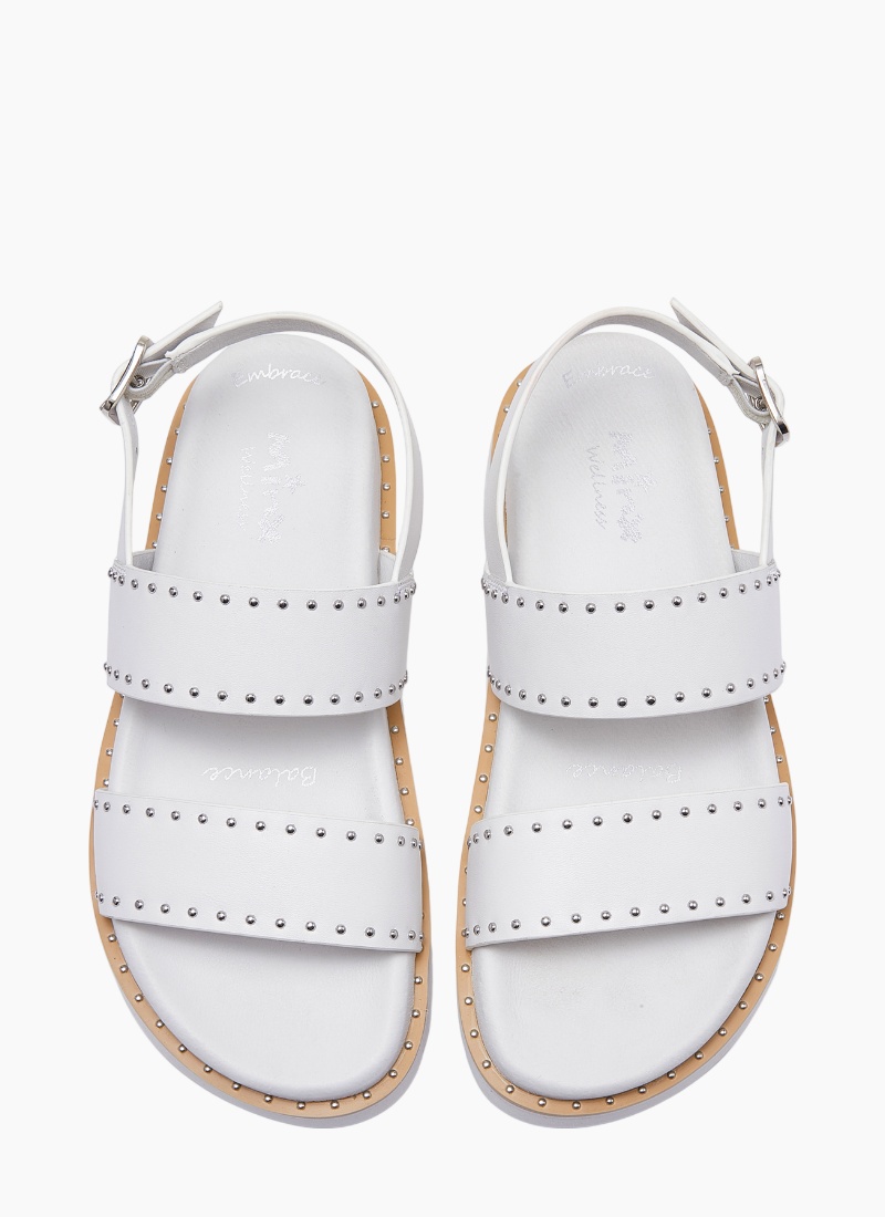 Juno brings a fresh silhouette to our Wellness collection with a lightweight EVA sole for effortless all-day wear. Featuring double leather straps that wrap elegantly across the foot and an adjustable buckle back strap, it’s accented with pin studs along the straps and sole rand for a modern, dressy edge. Built on our contoured Wellness footbed, Juno supports your heels, arches, and toes while its sleek, edgy detailing makes it the perfect sandal to transition seamlessly from day to night.