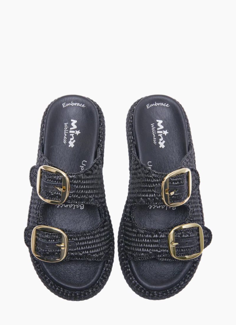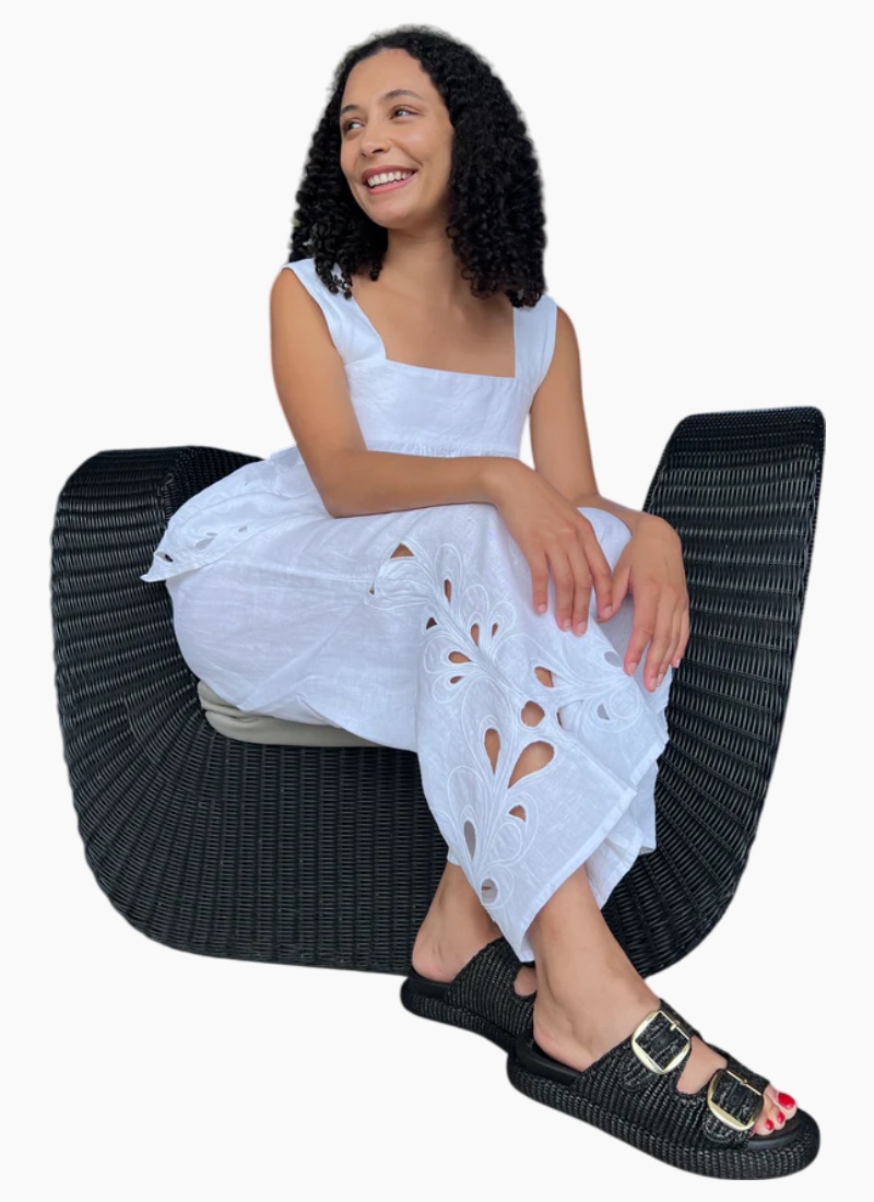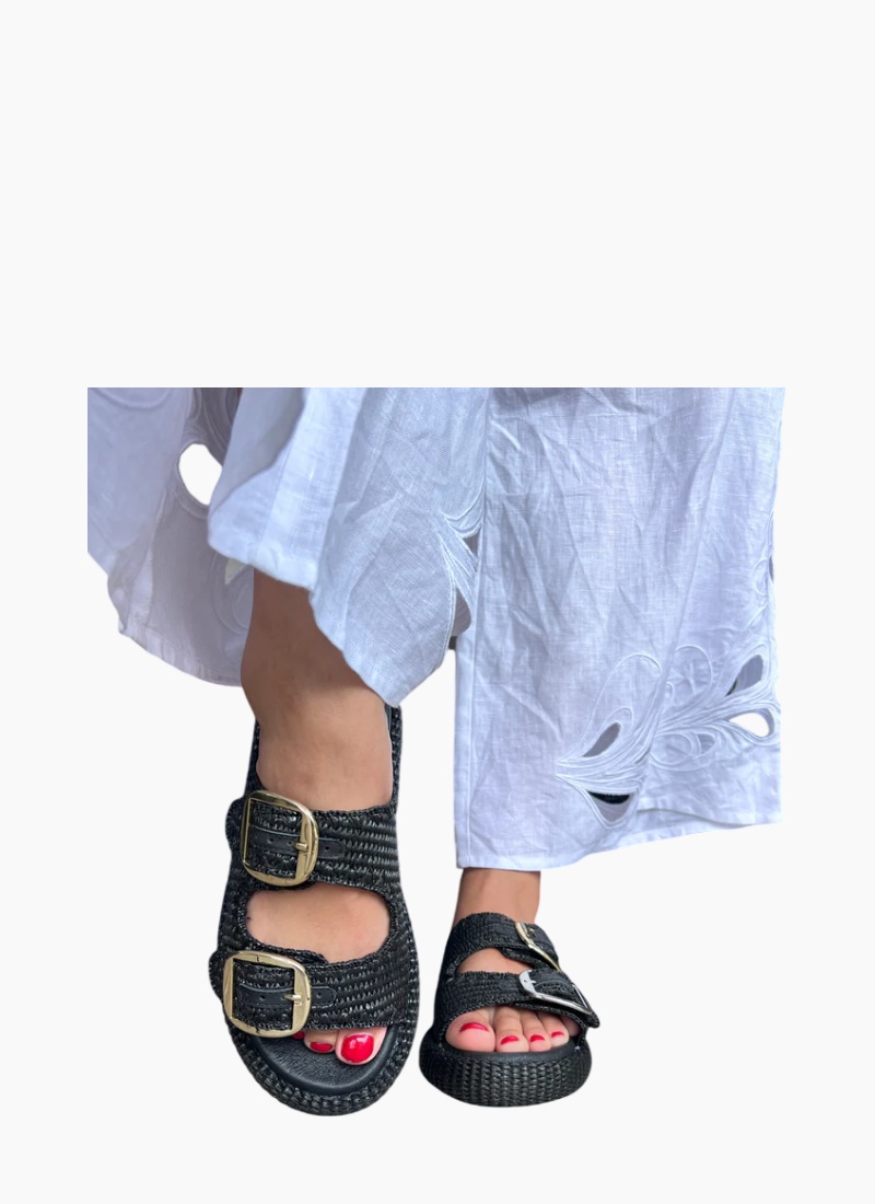 Relax is a rattan slide that brings effortless summer style to your wardrobe. Dual adjustable Velcro buckles let you personalise the fit, with metal finishes that complement each rattan colourway. The open round toe and full rattan jute-wrapped, sculptural sole combine modern comfort with elevated design. Open at the heel and inspired by artisanal craftsmanship, Relax transforms casual dressing, perfect with linen separates, pattern twin sets or denim weekend looks.