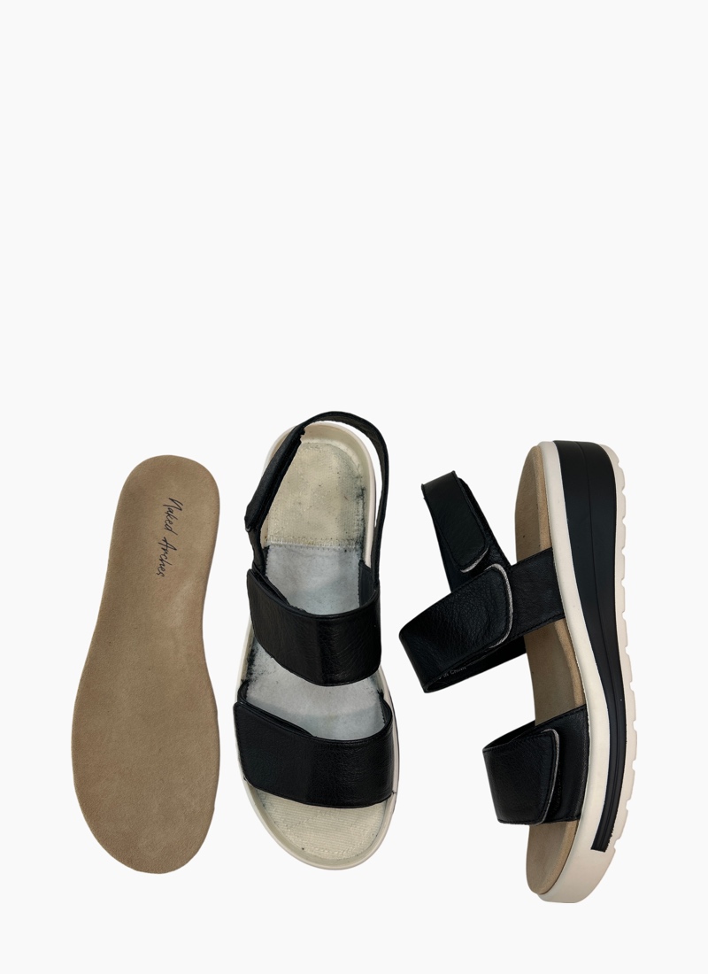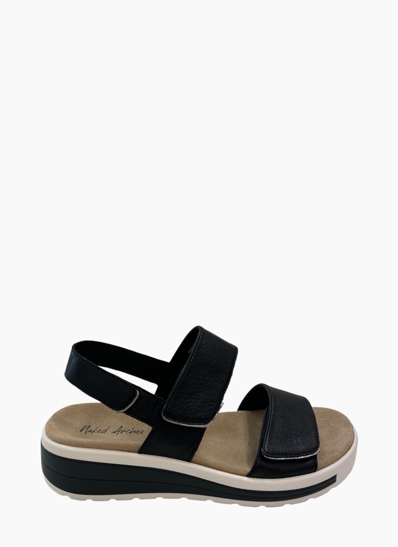 ORTHOTIC FRIENDLYIntroducing the Hanza slingback Sandal from NAKED ARCHES. This modern black sandal combines effortless style with daily comfort.