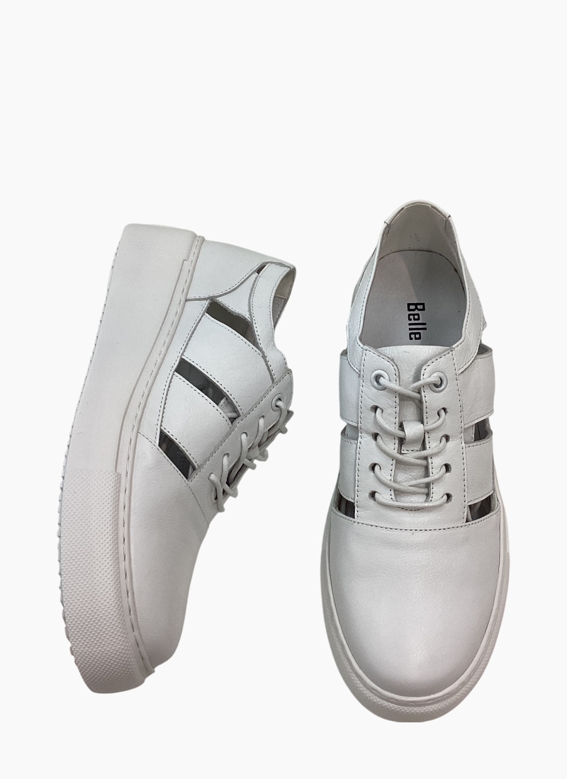 Introducing the Rabid Sneaker White from Belle Scarpe. A contemporary white sneaker that balances clean, minimalist styling with a modern Comfortable platform silhouette. 2cm- 4cm Platform Height.
