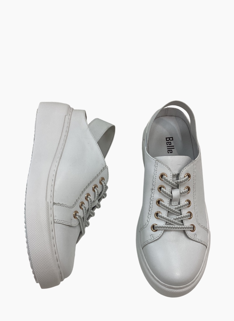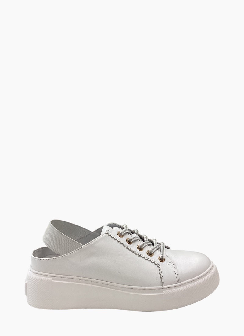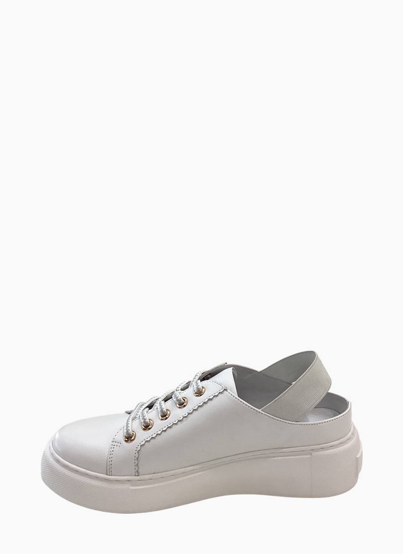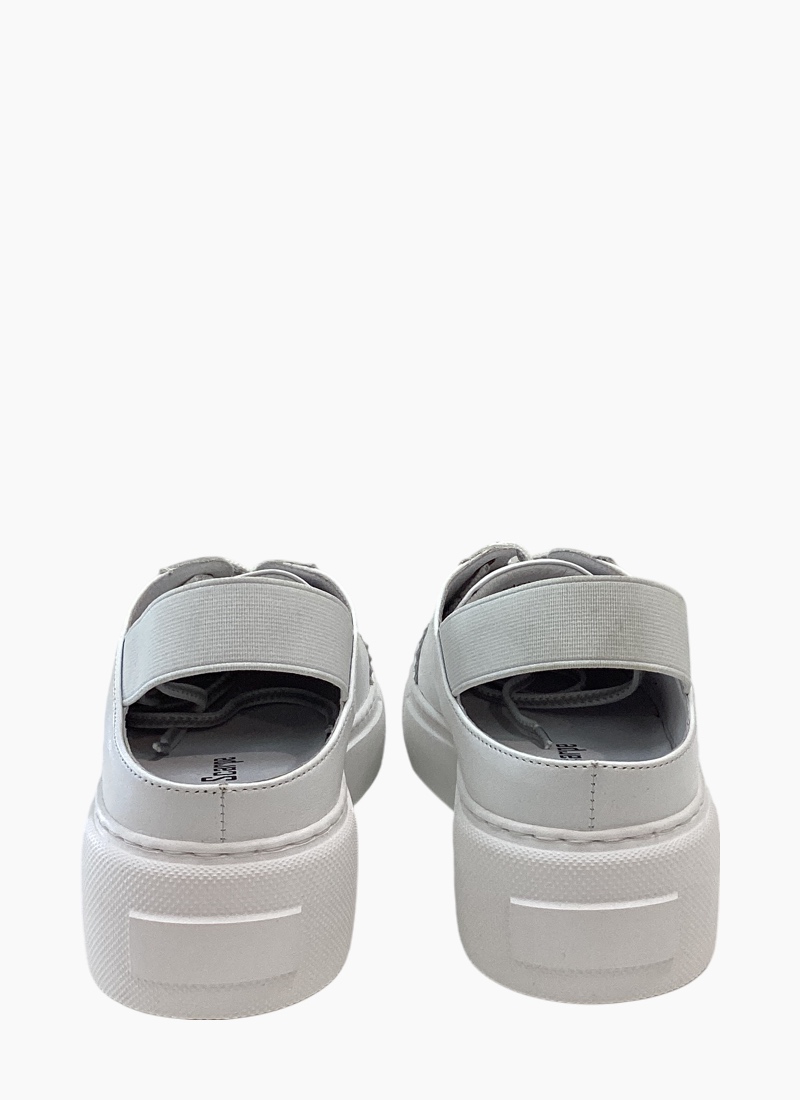 Introducing the Racon Slingback Sneaker from Belle Scarpe. This effortless white sneaker blends sporty platform attitude with a slingback silhouette for everyday polish.