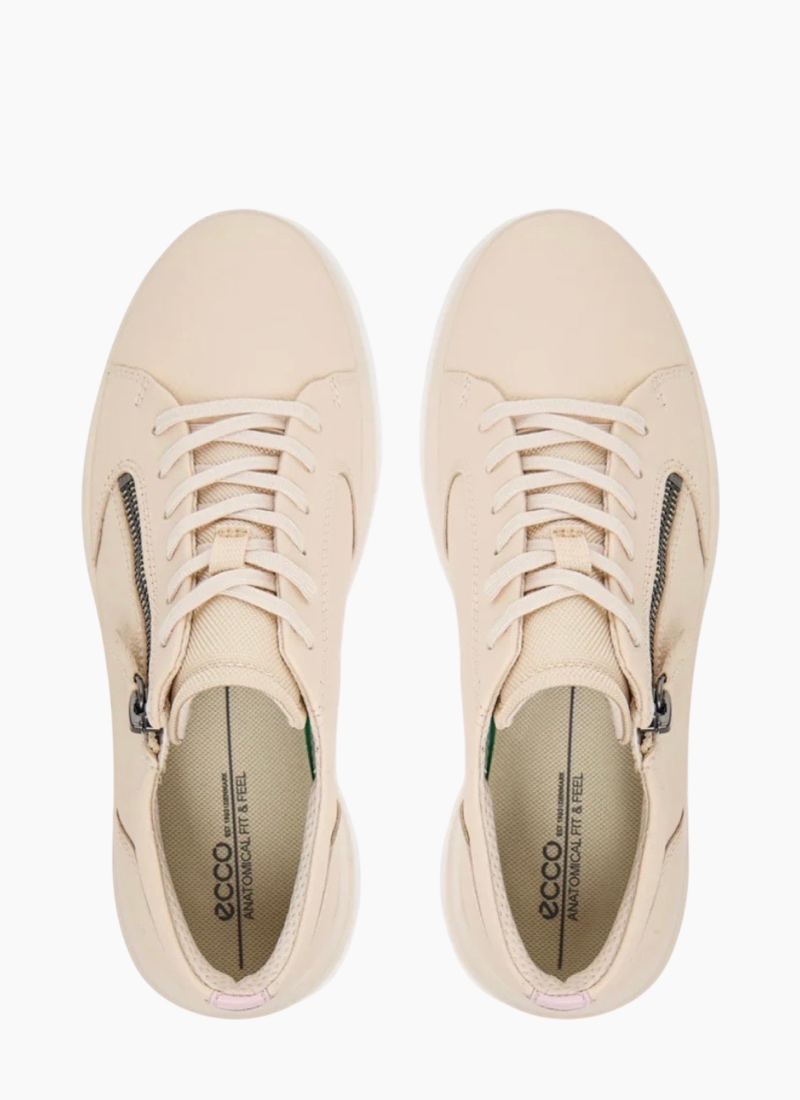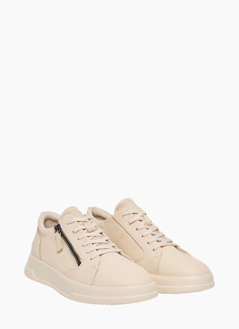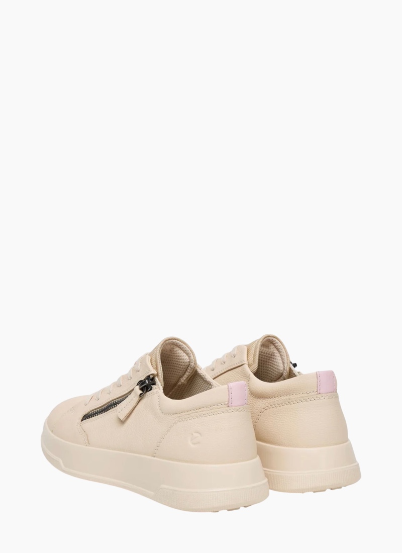Introducing the Move w zip lace sneaker Limestone/rose from Ecco. A modern, easy-to-wear sneaker in limestone with a soft rose heel tab, crafted in smooth leather for everyday comfort.