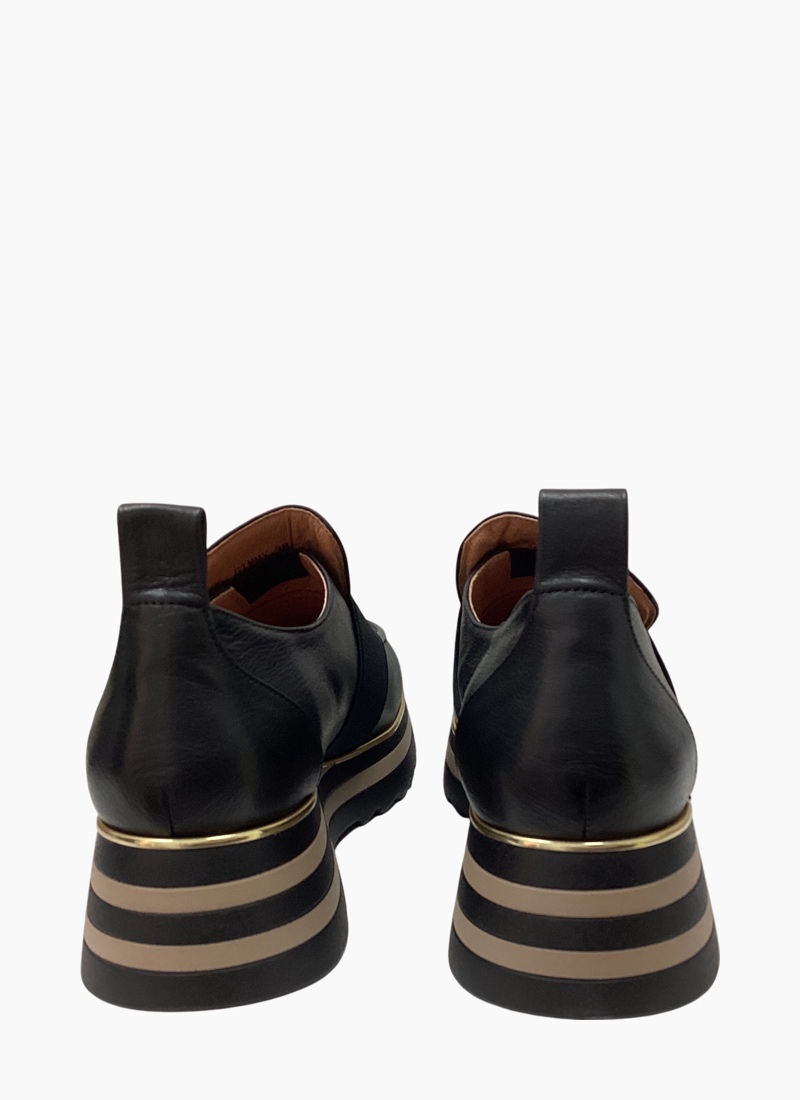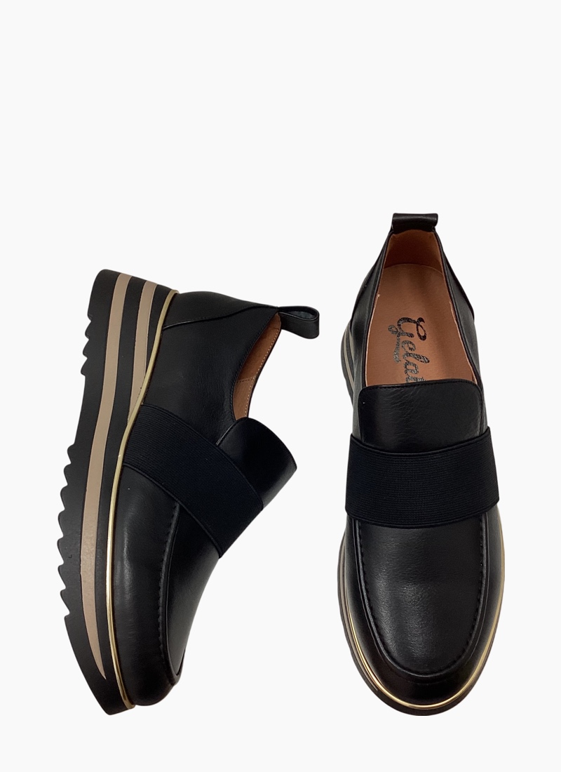 The name says it all! Gimmy Shoe Black from Gelato. A modern slip-in leather sneaker designed to lift everyday outfits with a sculptural platform sole.