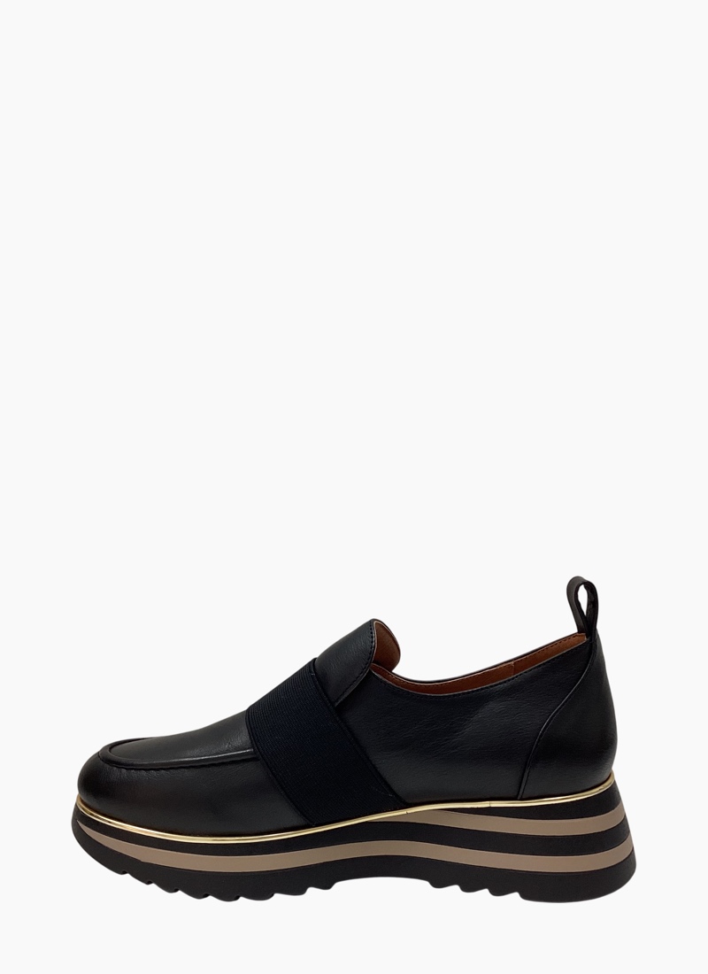 • Premium black leather upper with an elasticised vamp for easy slip-on wear