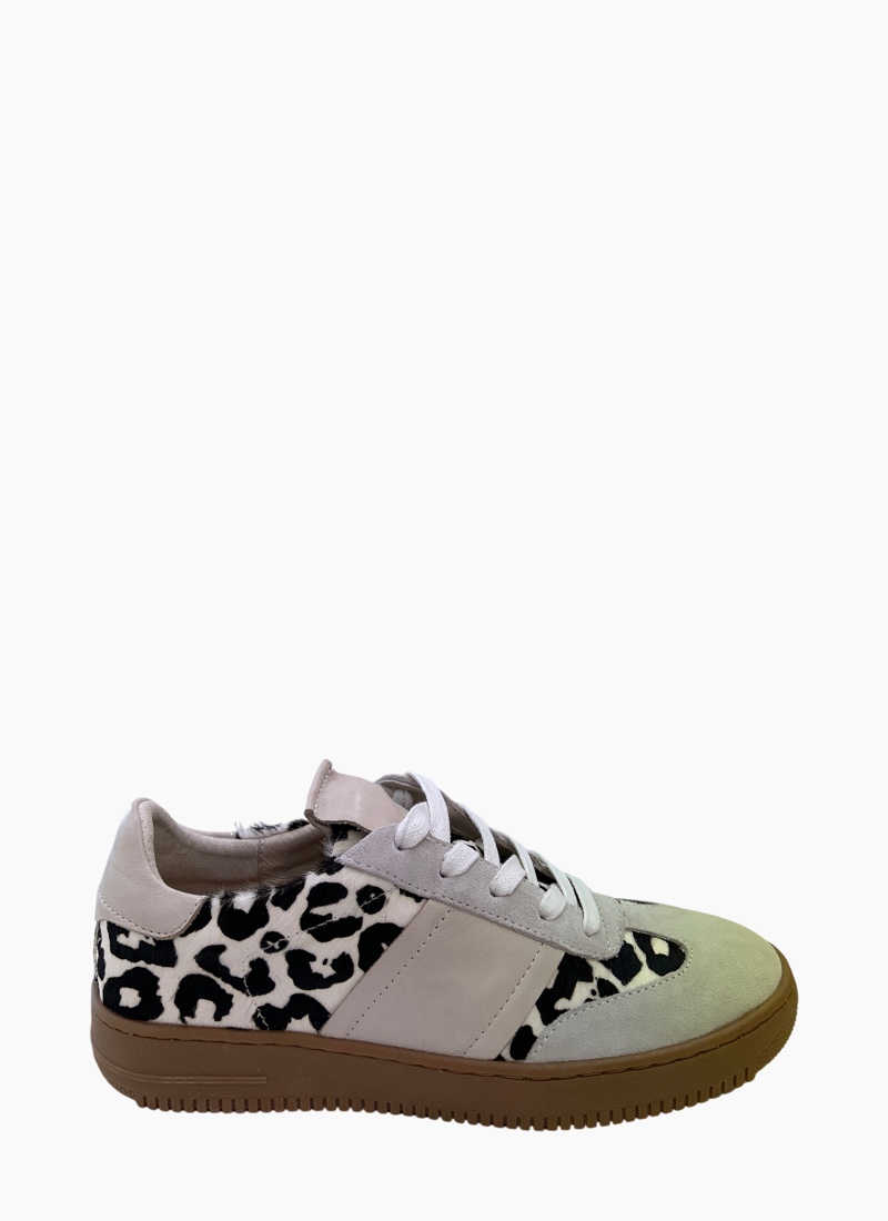 Introducing the Oxen Sneaker Leopard/Egret from Gelato. A statement low-top sneaker that pairs bold leopard-print panels with an egret leather silhouette for everyday polish.