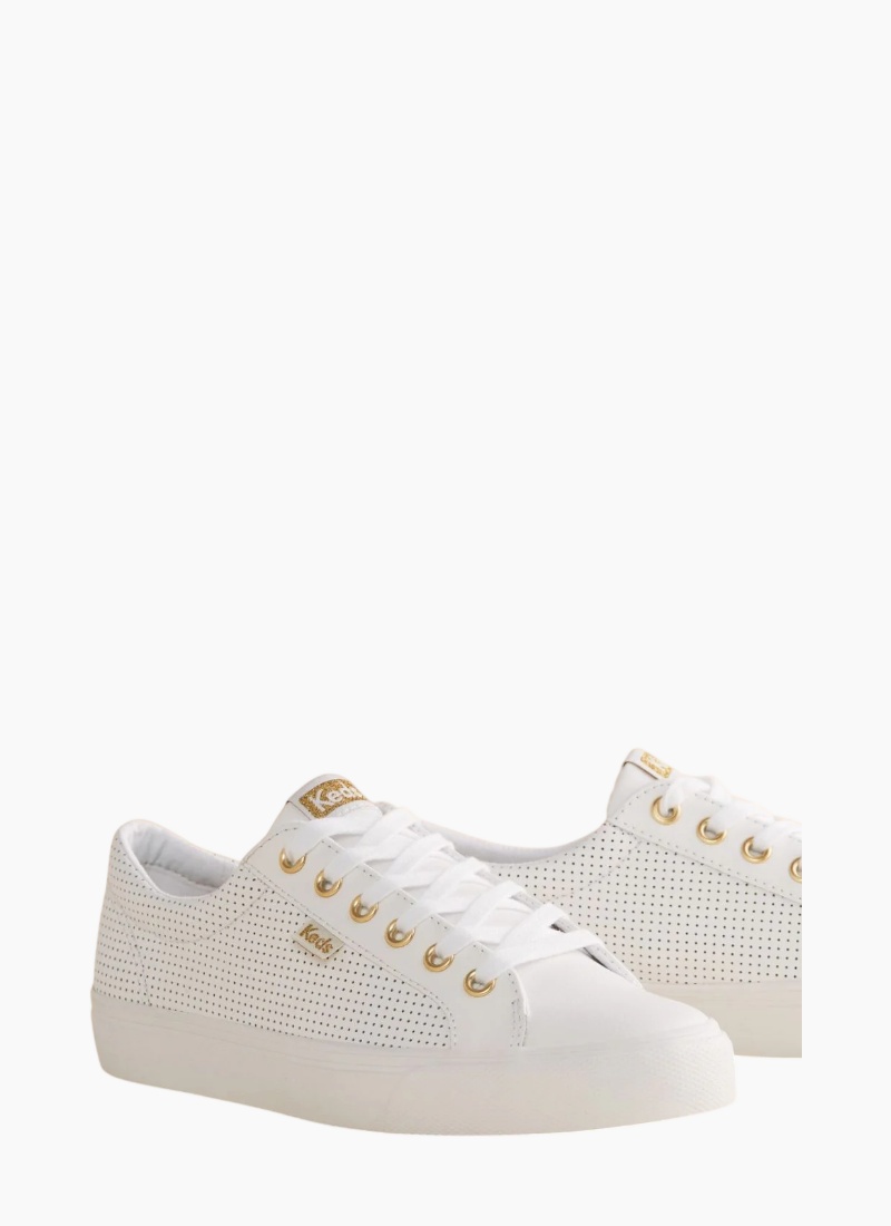 Introducing the Jump kick KEDS white/gold-TOP SELLER from Keds. This crisp white sneaker with gold-tone details offers a polished, everyday finish.